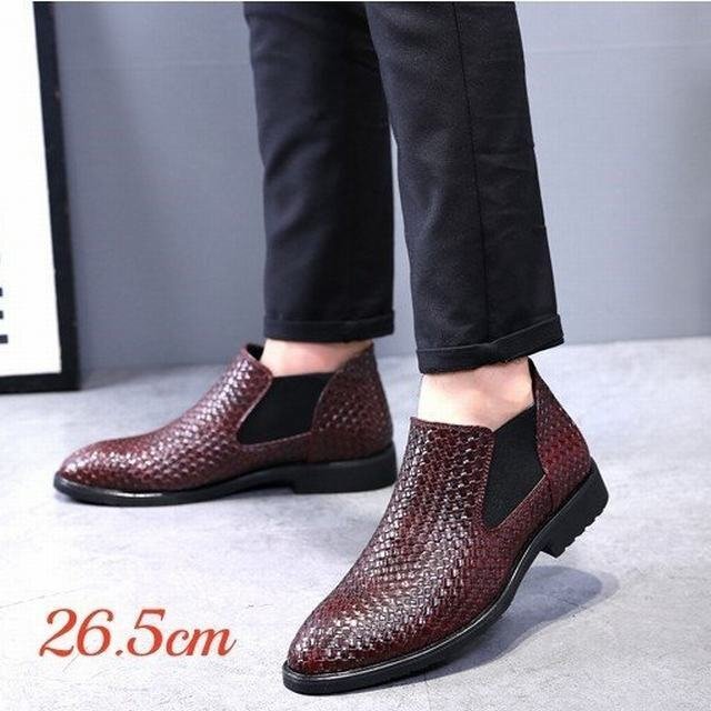 ビジネスシューズ メンズシューズ シューズ 靴 ロングノーズ 紳士靴  フォーマル サイドゴア 通勤靴 歩きやすい ワイン 26.5cm