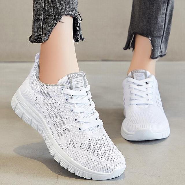 ★スニーカー レディース メッシュ レディース靴 スポーツ アウトドア 春秋 美脚 軽量 散歩シューズ 通気性 通勤 ホワイト 23.5cm