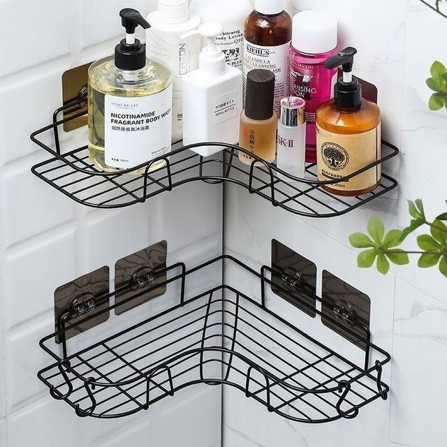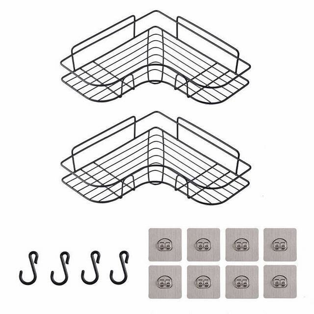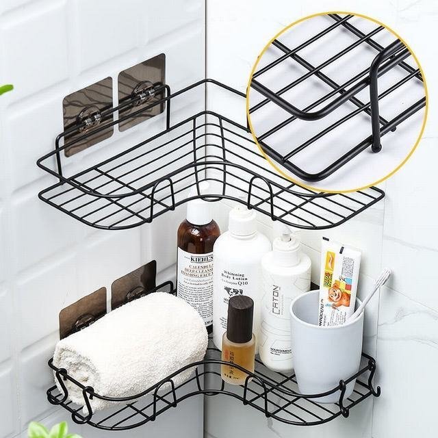 【2段式の浴室用ラック】 三角コーナーラックが2個付いて、収納力がたっぷり、家族のコンディショナー?石鹸?洗顔料?キッチンの調味料などが楽に収納できます。