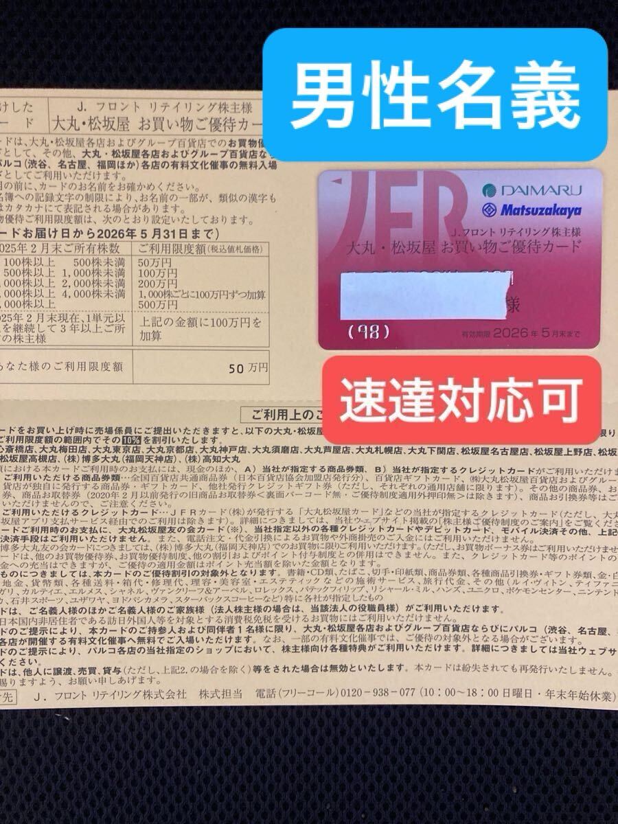 Jフロントリテイリング 株主優待カード 大丸・松坂屋