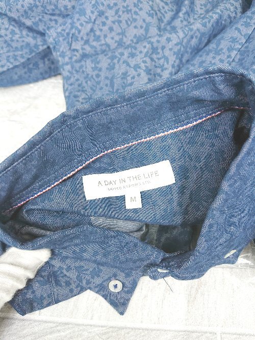 ◇ A day in the life UNITED ARROWS 総柄 ボタンダウン BD 半袖 シャツ サイズM ネイビー系 メンズ P
