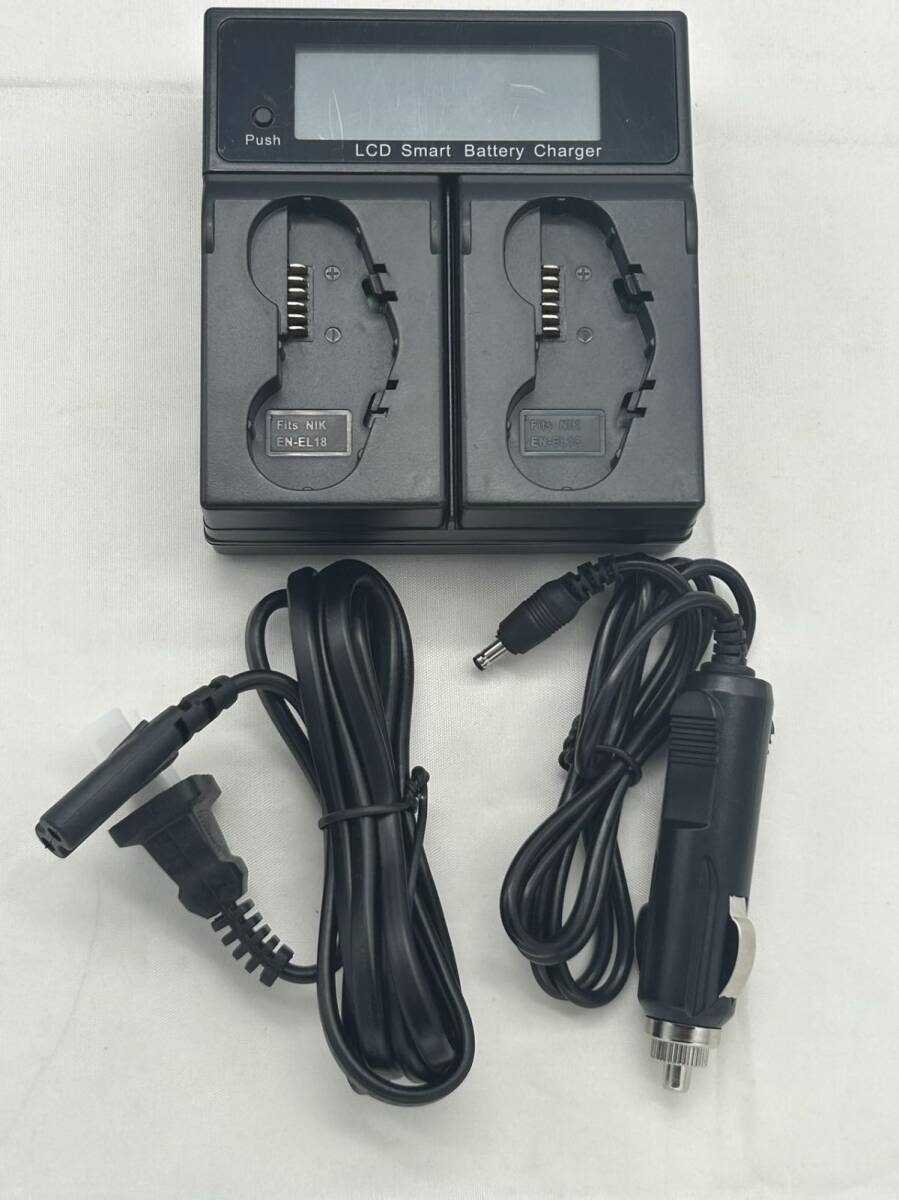 ※純正・互換バッテリー共に充電できます。 TC116→ Nikon EN-EL18、EN-EL18a、EN-EL18b、EN-EL18c、EN-EL18d、EN-EL18eバッテリー用バッテリー充電器 同時2個充電可能 バッテリーは販売対象外です。充電器のみです。