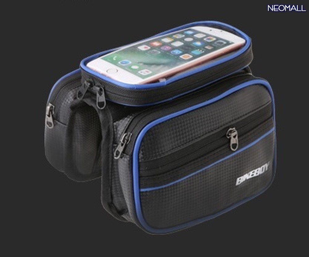 便利アイテム☆ トップチューブバッグ ブルー スマホ ケース タッチパネル ポーチ 5.7インチ フロント バック 自転車 パーツ 【apa-377】