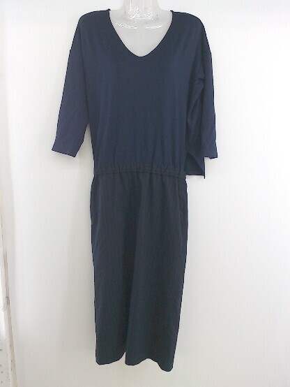 ◇ JOURNAL STANDARD ドッキング 七分袖 膝下丈 ワンピース サイズ150-155 MS 9 ネイビー レディース P