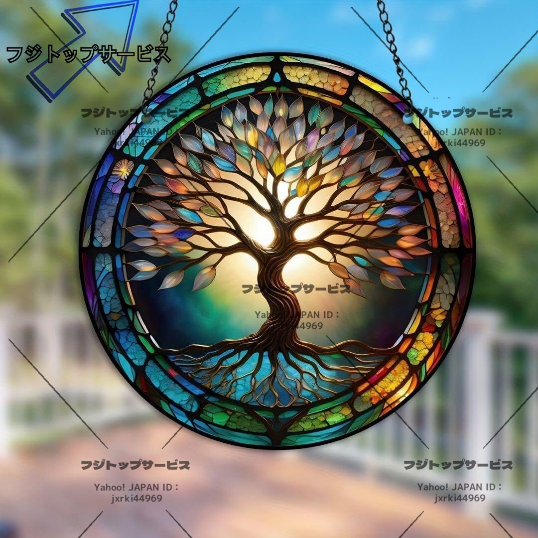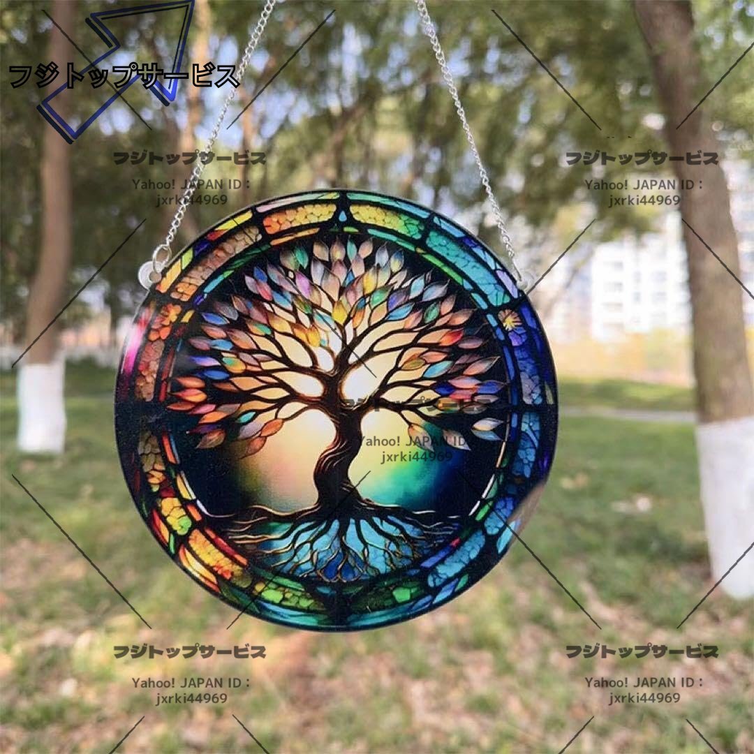 当商品は、太陽の光を美しく反射するサンキャッチャーです。ステンドグラス風のデザインが特徴で、お部屋や窓辺に飾ると、光の角度によって異なる美しい輝きを見せます。