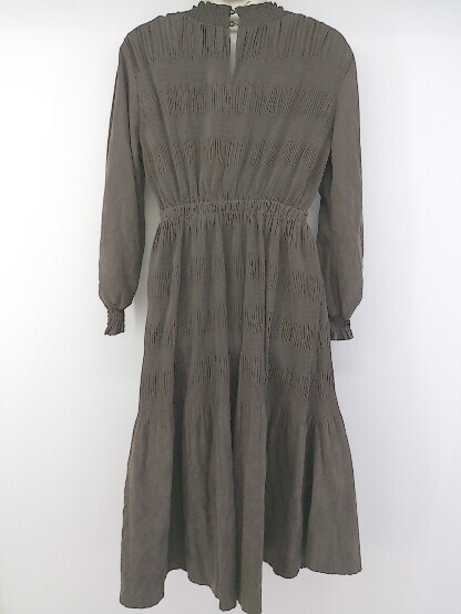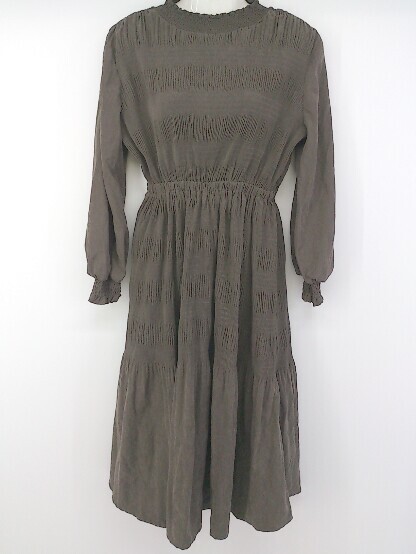 ◇ CPCM シーピーシーエム スタンドカラー シャーリング 長袖 膝下丈 ワンピース サイズF チャコールグレー系 レディース E
