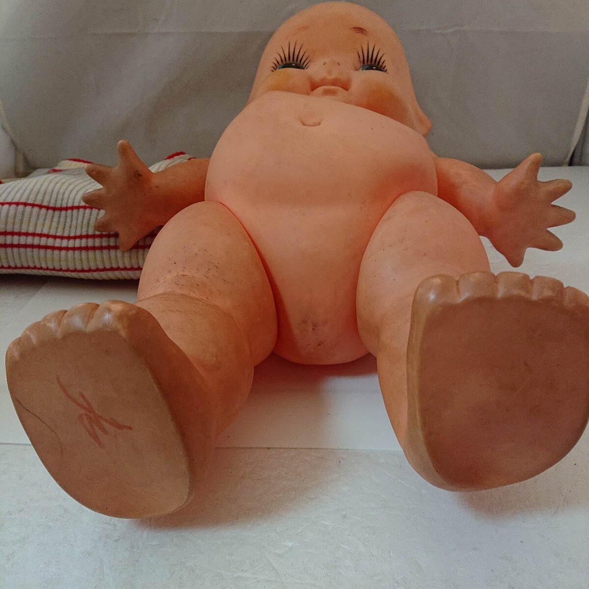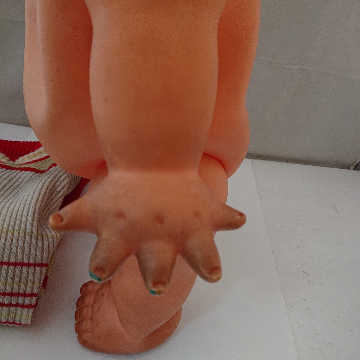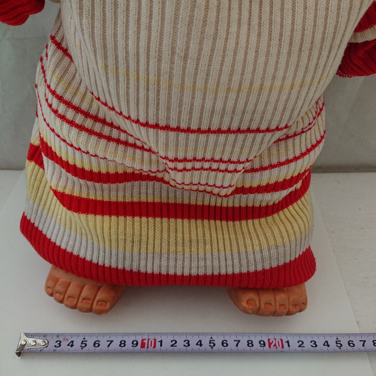 全体的に焼け 擦れ・傷や汚れ・塗装の剥がれ・へこみ等 保管時の経年劣化あります。足裏にペンとマジックの書き込み有り。ニットは子供服を着せている様でオーバーサイズです。ジャンク扱い・画像のものが全てです。