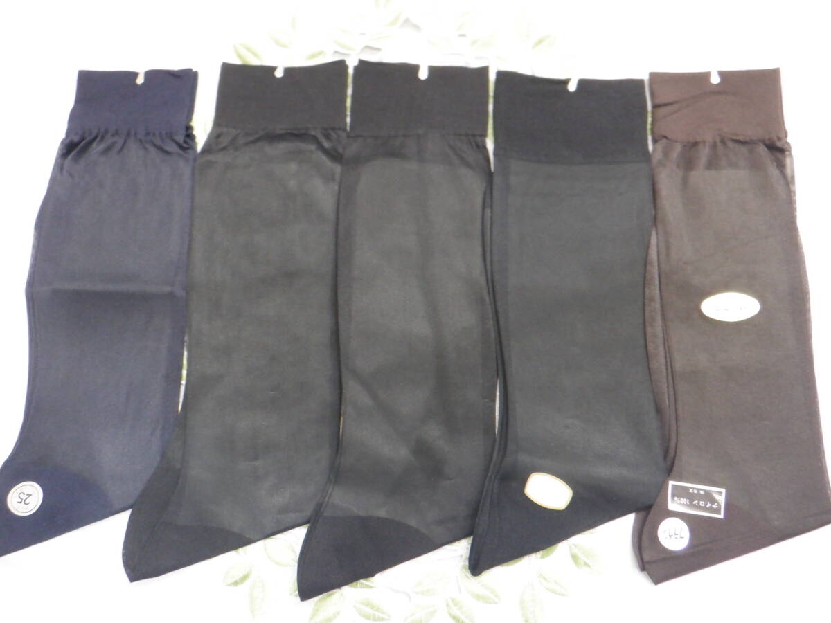 ③★紳士 シースルーソックス/靴下 5足(黒3 紺1 茶1) 25㎝ ナイロン100% ハイゲージ紳士ストッキング★ | |||