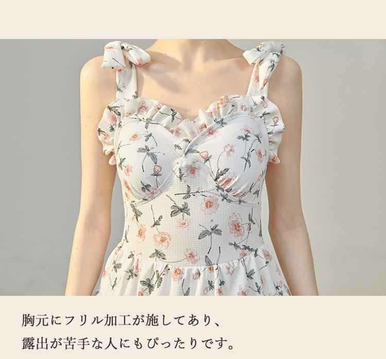 ・胸元にフリル加工が施してあり、露出が苦手な人にもぴったり背面は大胆な広いスクエアネックでセクシー。