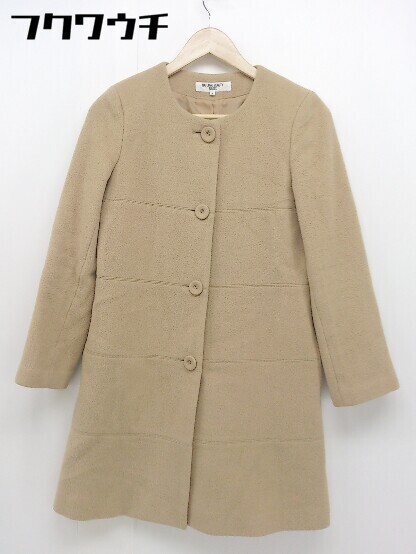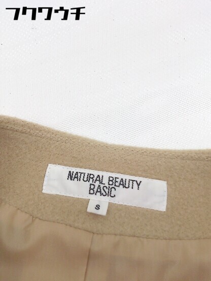 ■ NATURAL BEAUTY BASIC アンゴラ混 ウール ノーカラー コート サイズS ブラウン レディース