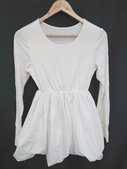 ◇ Birthday Bash バースデーバッシュ ペプラム風 長袖 Tシャツ カットソー サイズM ホワイト レディース メンズ P