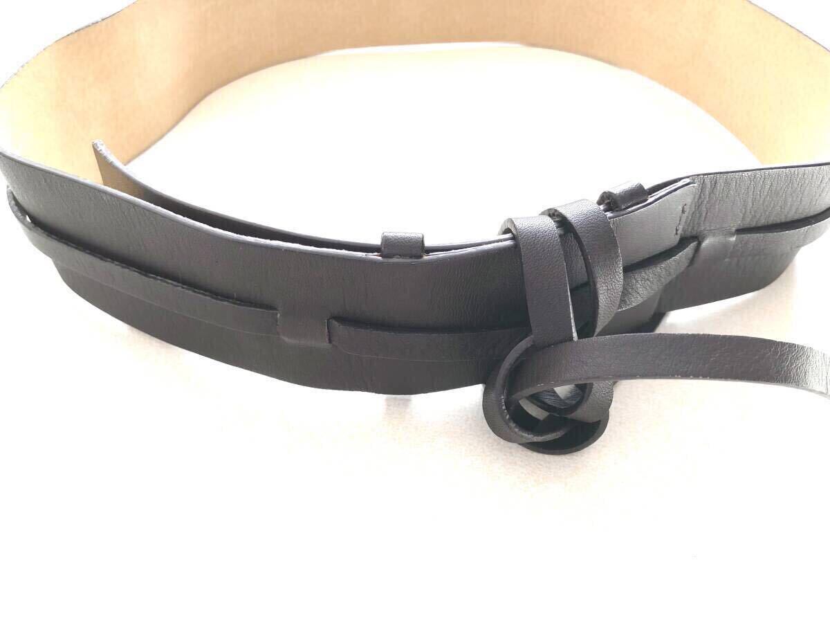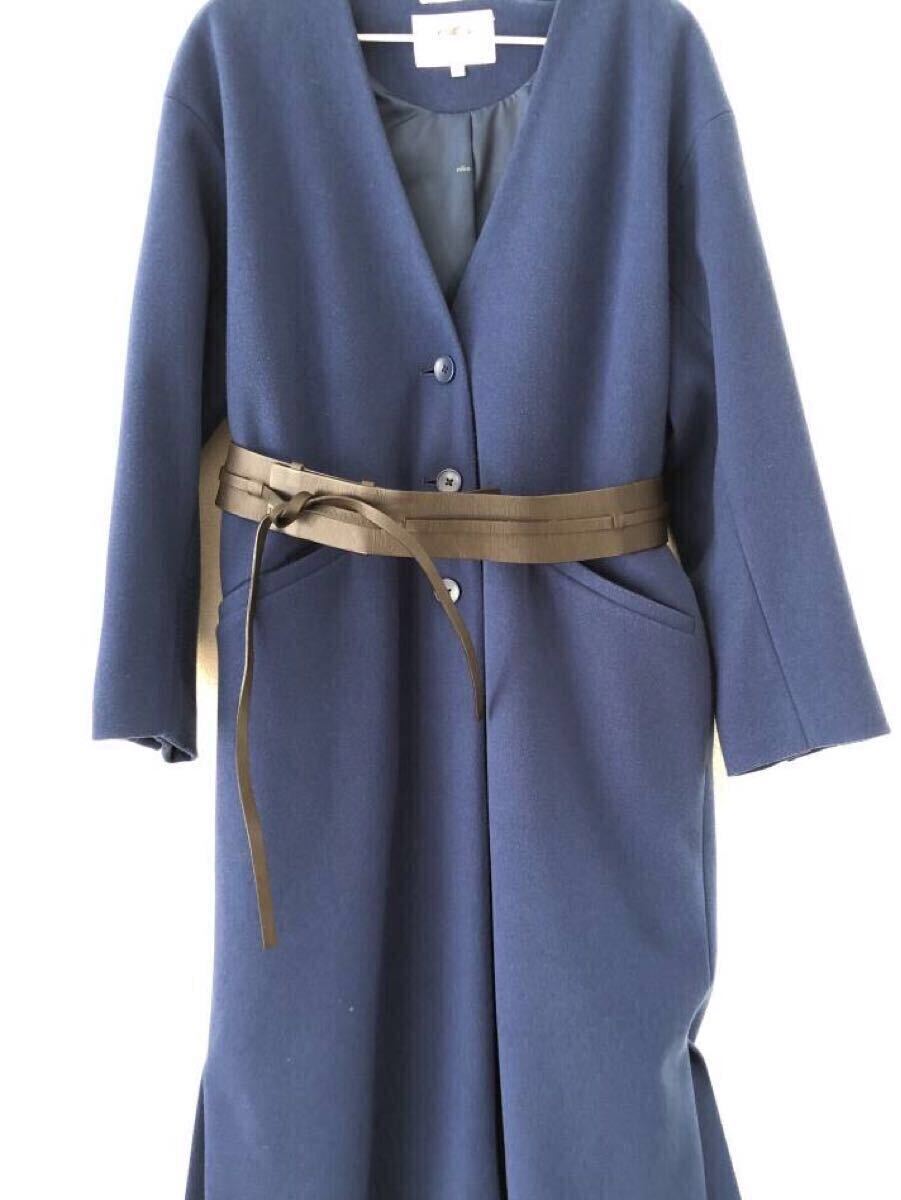 2回使用。2つのベルトループに通し、ひもで結ぶスタイルのベルト。コートやワンピースに。結び方で印象を変えることができそうです。1枚目と3枚目は結び方を変えています。