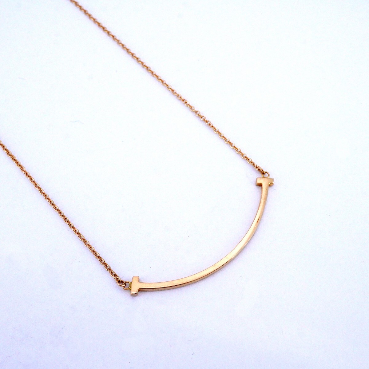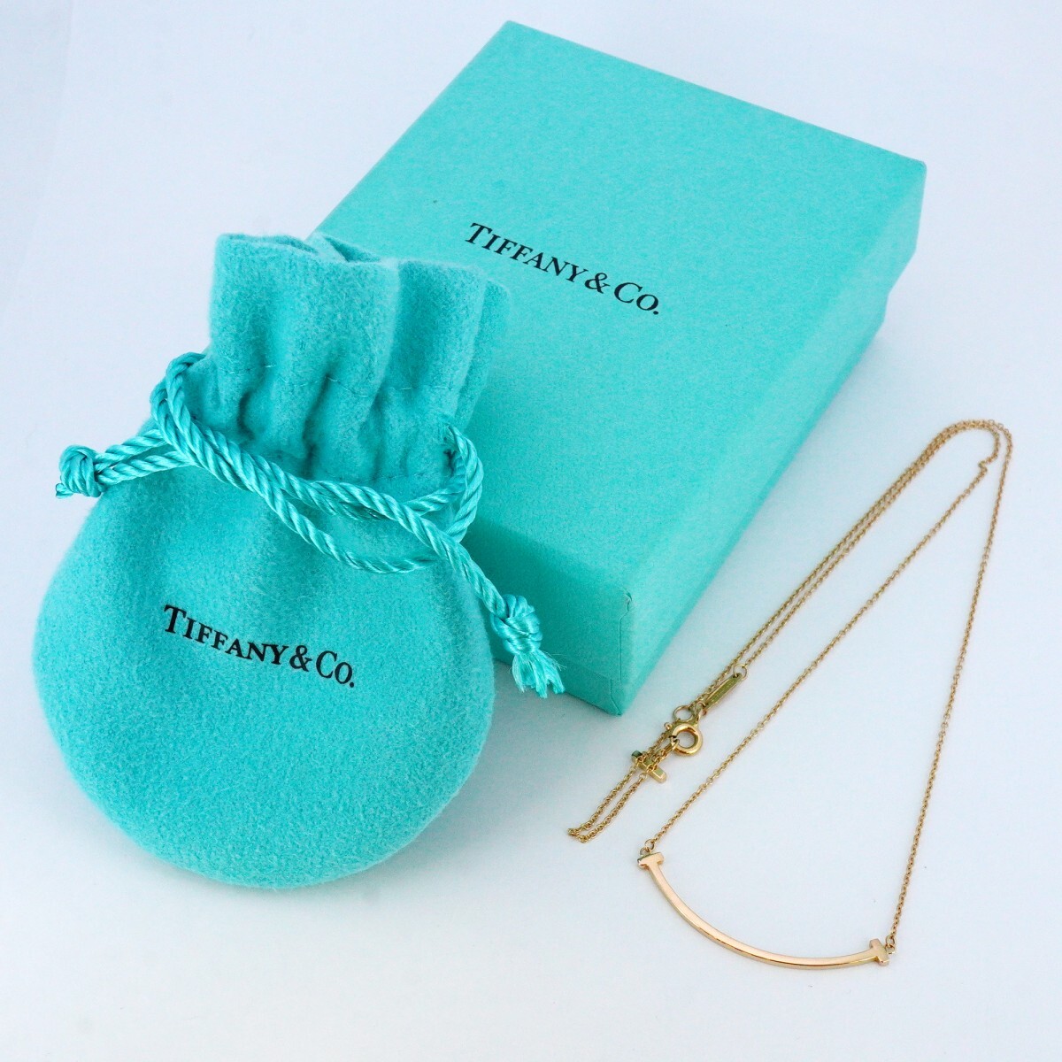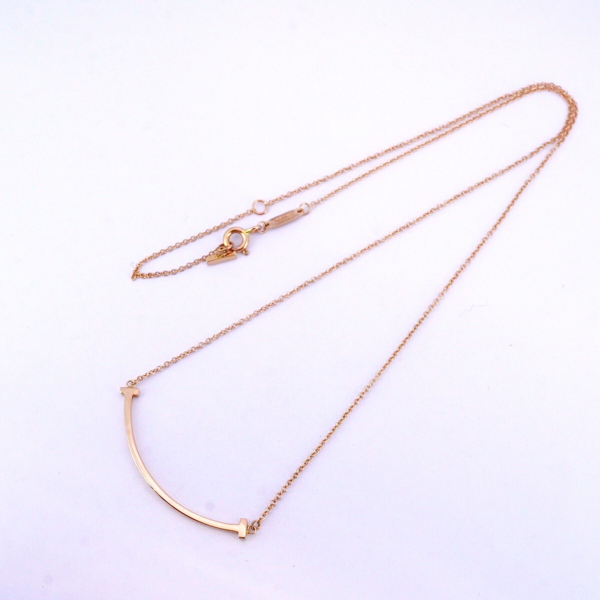 【5job0517】ティファニー ネックレス Tスマイル スモール K18PG ピンクゴールド【中古】レディース