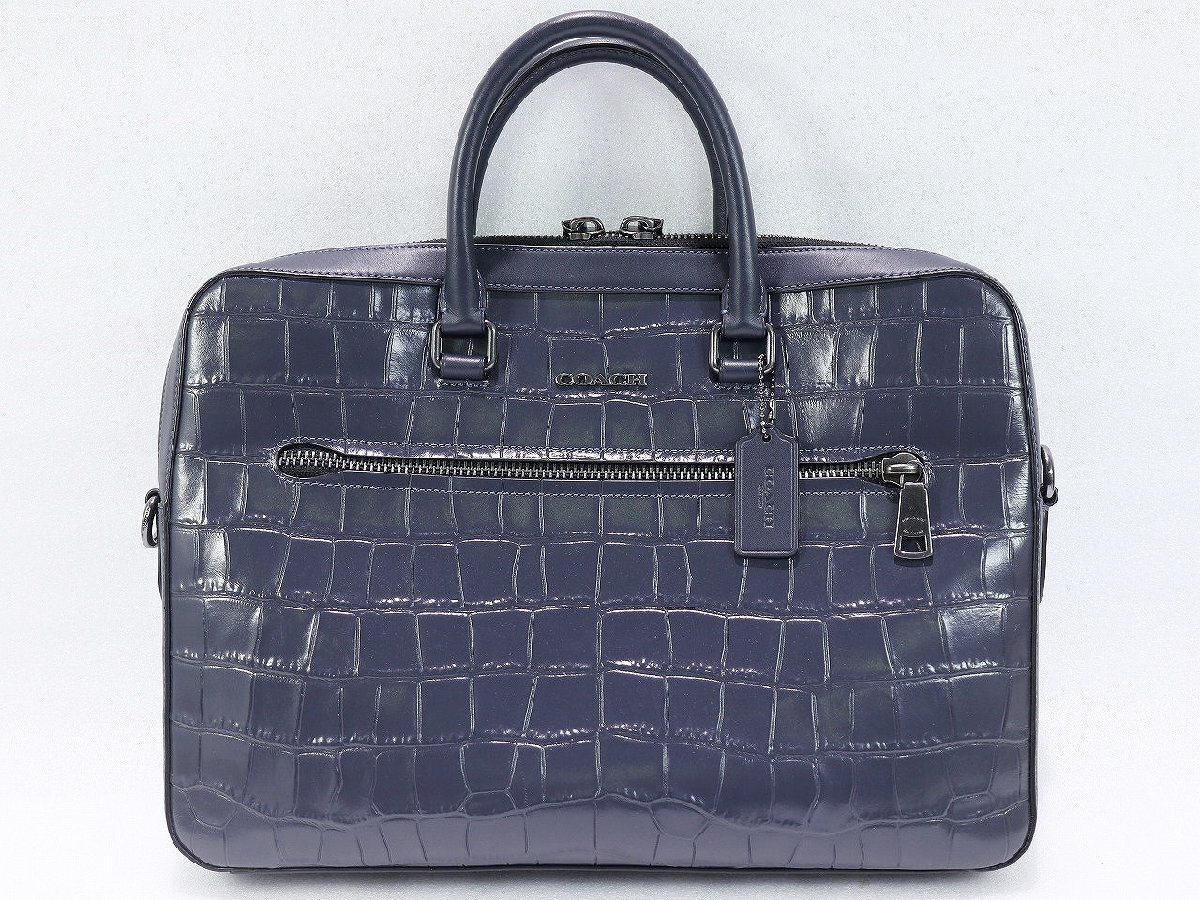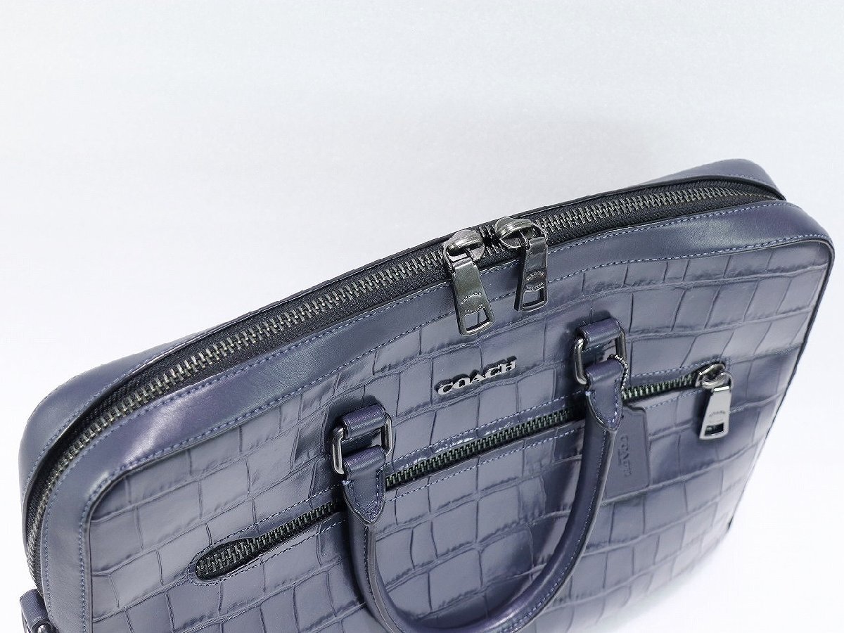 【質Banana】美品 COACH/コーチ CR273 メンズ ビジネスバッグ イーサン スリム クロコダイル エンボス ミッドナイトネイビー 現品限り♪