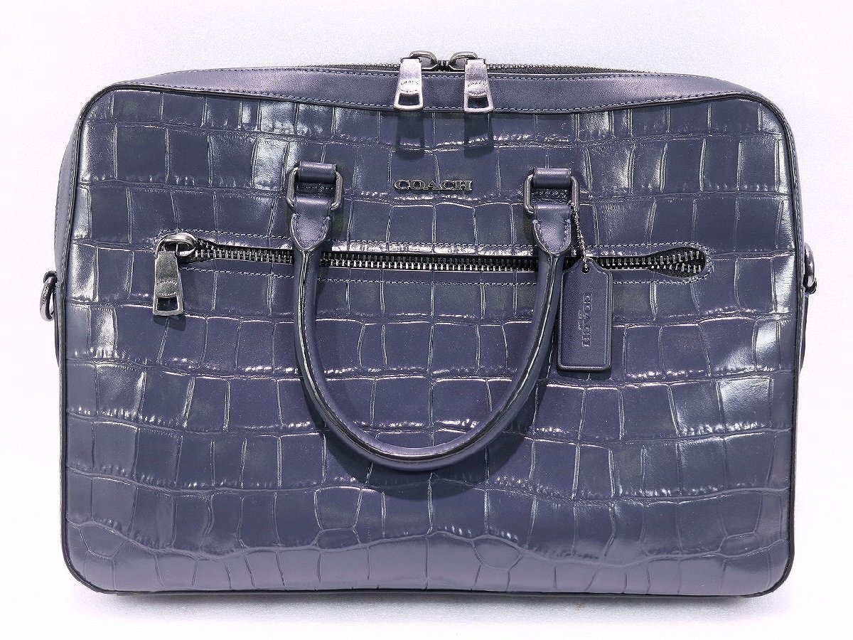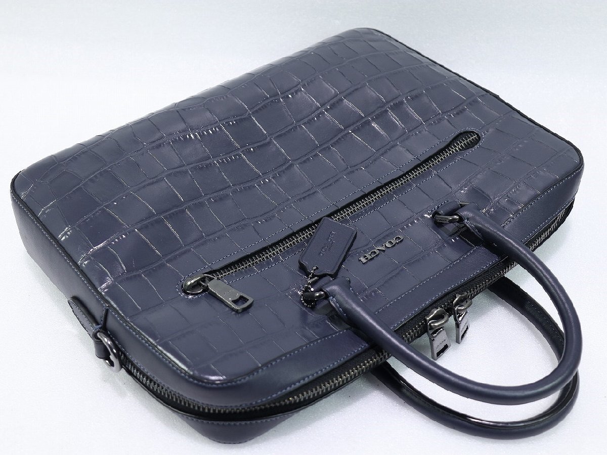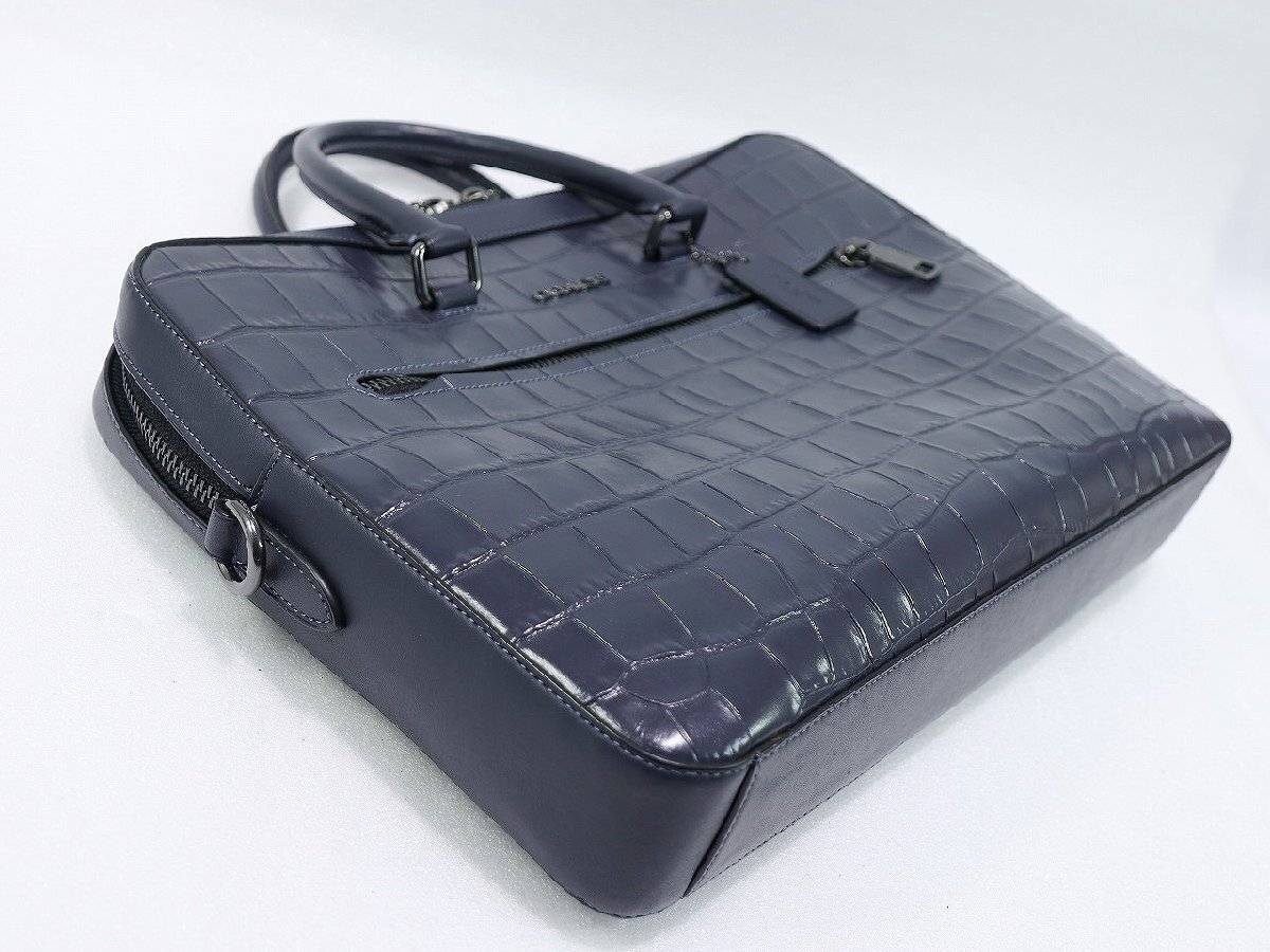 【質Banana】美品 COACH/コーチ CR273 メンズ ビジネスバッグ クロコダイル エンボスド レザー イーサン スリム ミッドナイトネイビー 現品限り♪.。.:*・゜