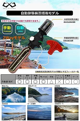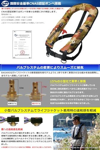 JES-BASARO (ジェスバサロ) 自動膨張式 ライフジャケット 救命胴衣 自動/手動双方対応モデル 2Wayモデル 肩掛け 釣り 浮力150N 日本国内メーカー B-Life-Jac-TYPE-J-MN/AT 日本語取説 CO2ボンベ搭載