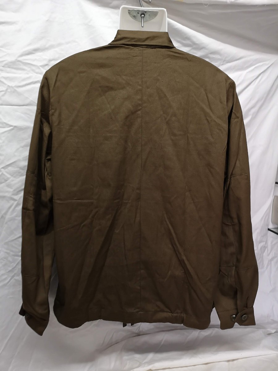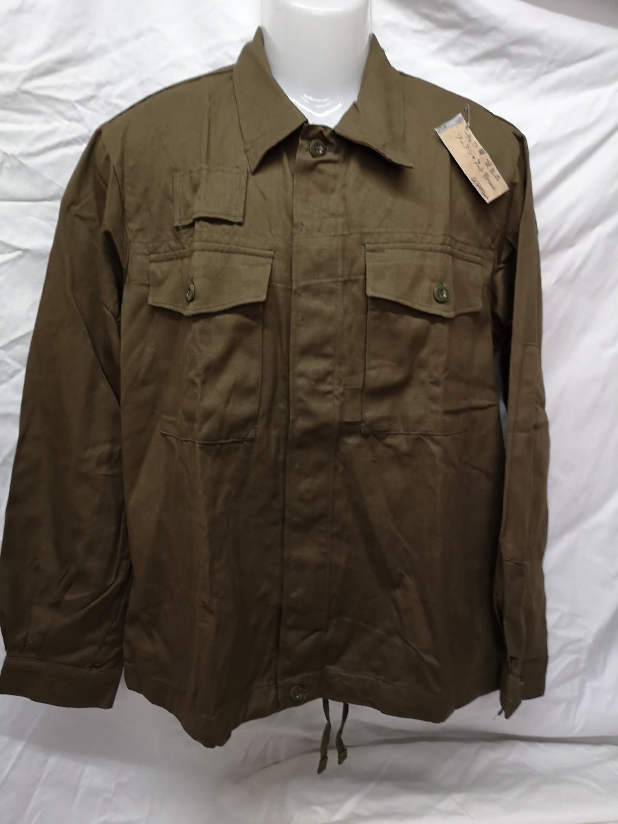 チェコ軍ユーティリティーワークジャケットです。 フロント部分にポケットが2つ付きます。未使用品です。 デザインに個体差があるもののそれぞれに魅力的があり、合わせやすい落ち着いたカラーにまとまっています。 薄手のコットン地が使用されアウターやインナーにも使えるので、オールシーズン着用が可能です。 ●素材:コットンツイル100% サイズ表示は2Aで着丈が72cm程度、身幅が63cm程度、肩幅49cm程度、袖65センチ程度でメンズXLサイズ程度です。 沖縄離島を除く全国500円でお送りいたします、落札価格にプラスでお願いいたします。