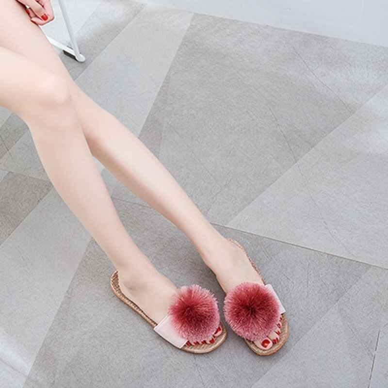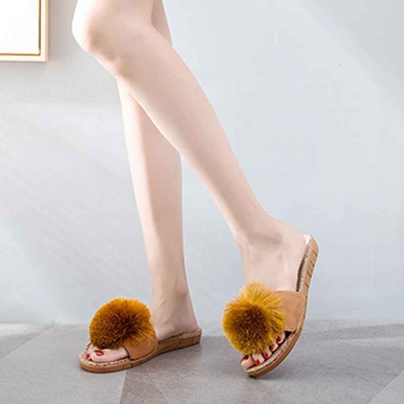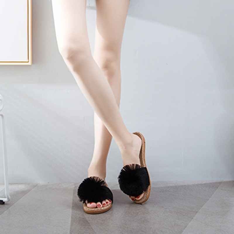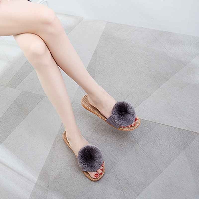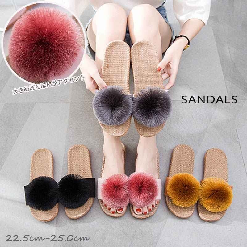 サンダル スリッパ ルームシューズ 室内履き かわいい ぽんぽん 通気性 ぺたんこ 37-38 グレー