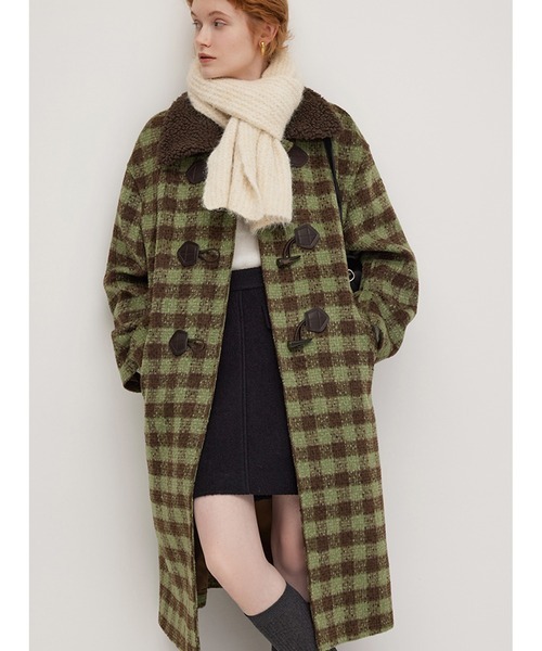 参考商品名:ボアカラー ブロックチェック ダッフルコート FD23W301【Fano Studios】
