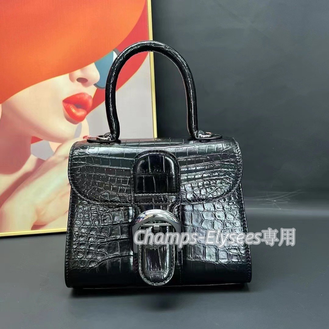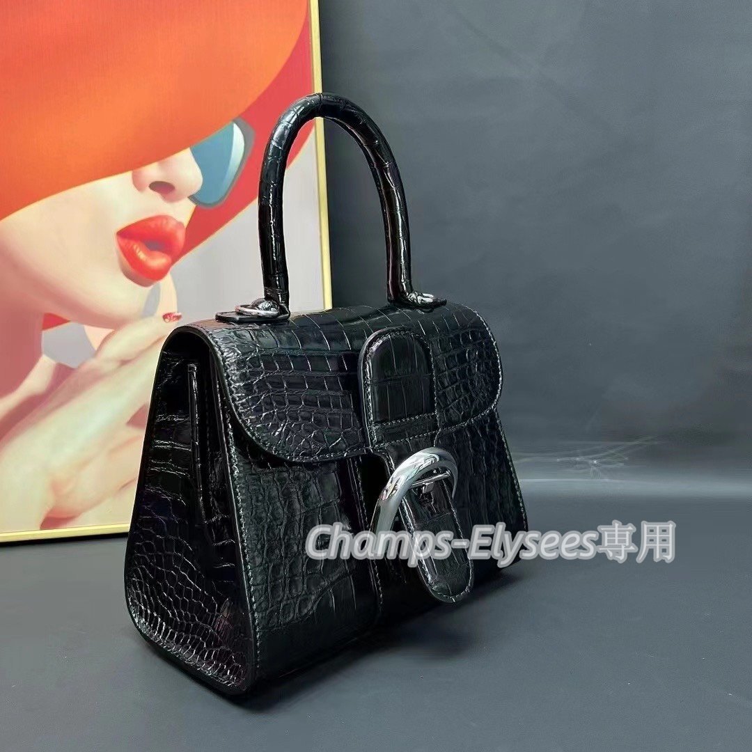 本物 クロコダイル ショルダーバッグ ハンドバック 丈夫で美品 ワニ革腹革 レディースバッグ 黒