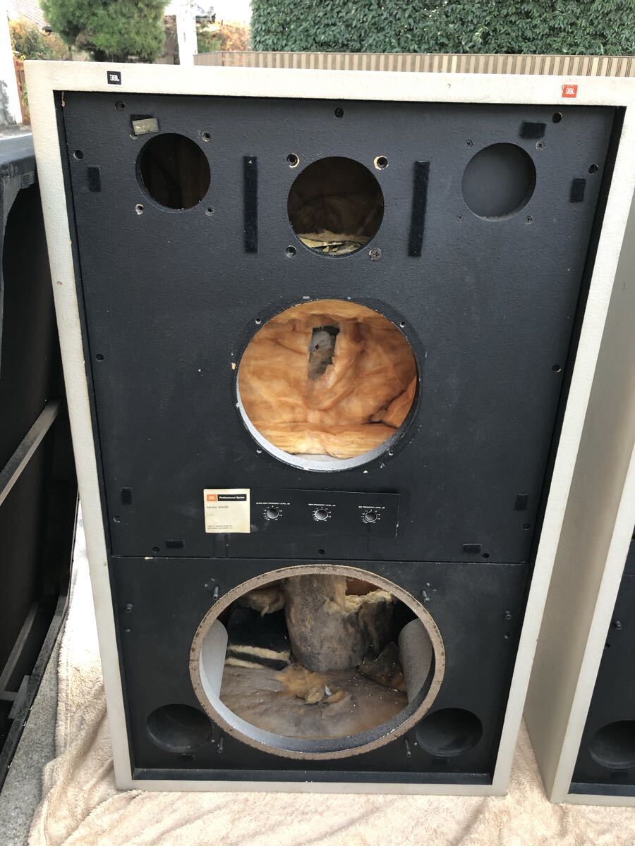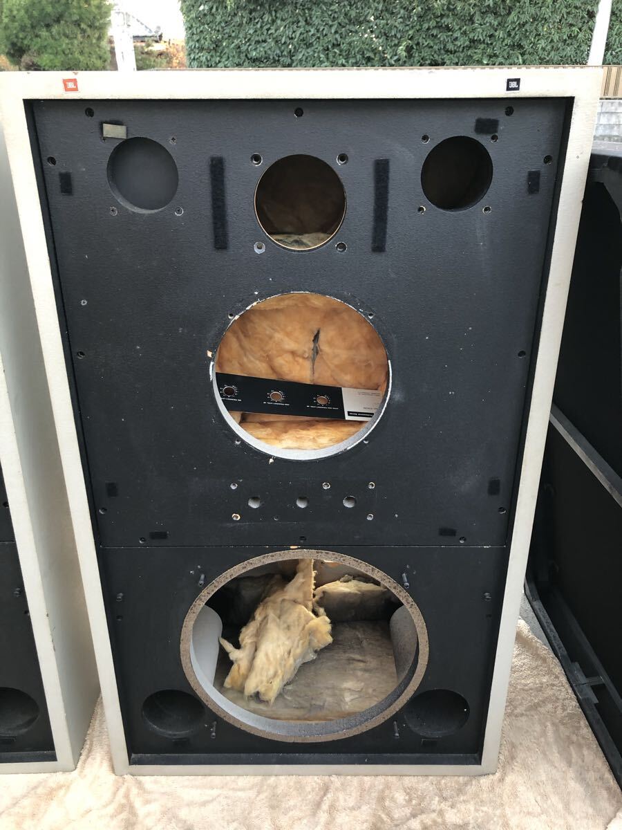 JBL 4343b スピーカーのオリジナル筐体です。中古品のため傷や汚れがあります。写真に写っているものが全てです。丁寧に梱包し、西濃運輸で発送いたします。苦情や補償の要求はご遠慮ください。店頭受け取りは受け付けておりませんのでご了承ください。よろしくお願いします