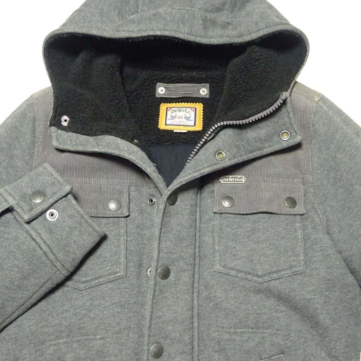 ★DIESEL★パーカースウェットジャケットS/ディーゼルグレーフーディーメンズフードブルゾンジャンパーボアフリースコーデュロイ