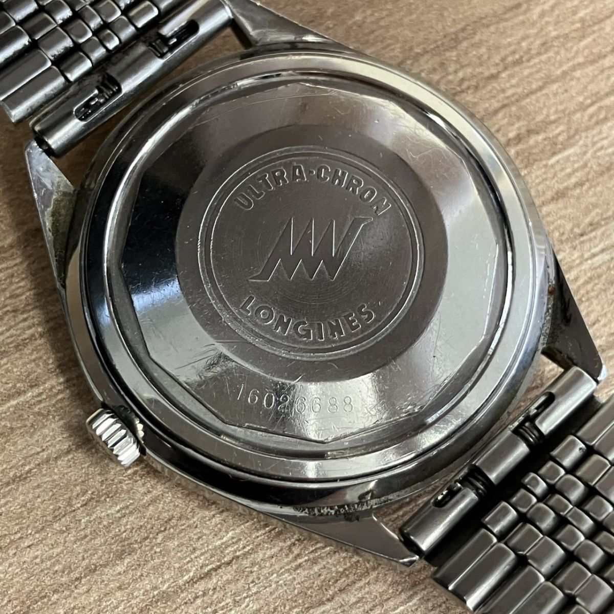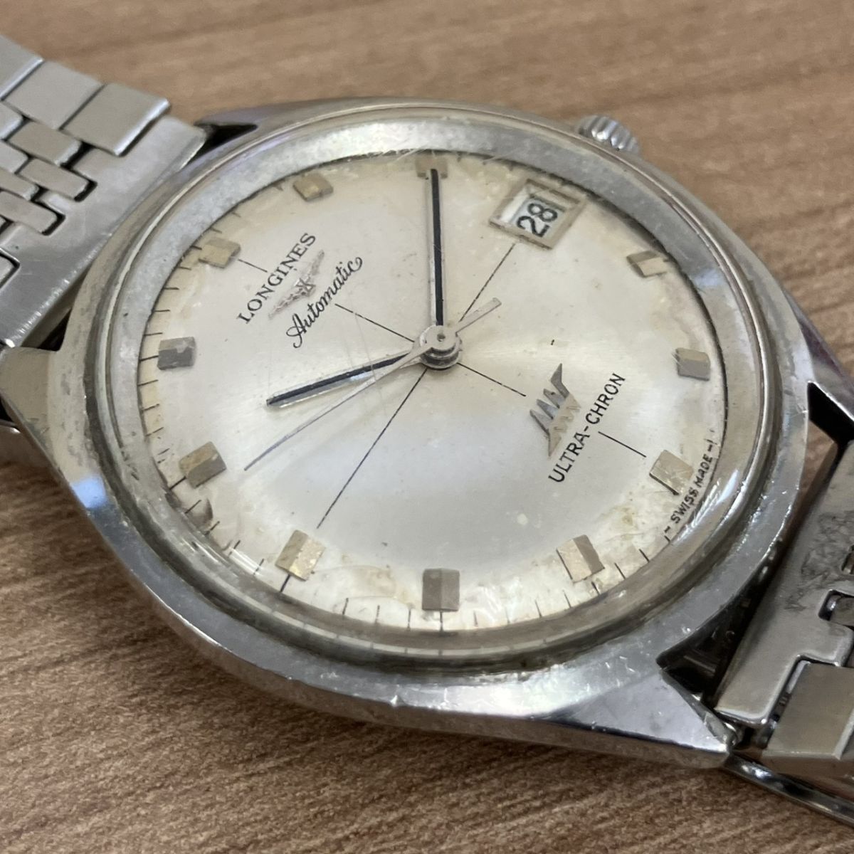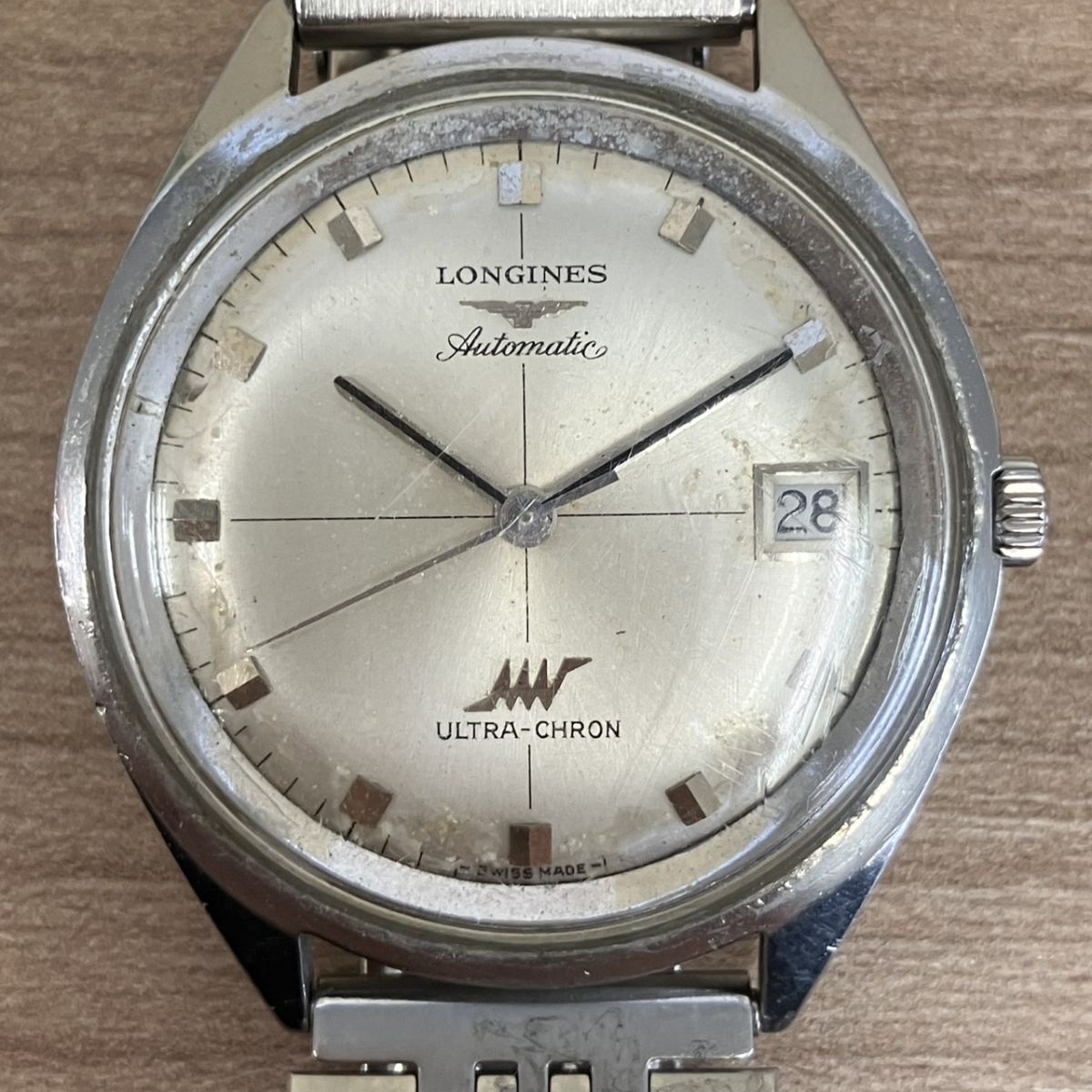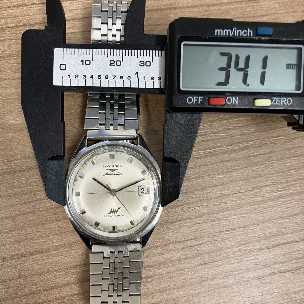取り扱っている商品は未使用・未開封も含め、全て一度は人の手に渡った一点ものの中古・ジャンク扱いでの商品です。 当方素人ですので肉眼で確認できる簡易的な検品、採寸、および簡易梱包となります。 ※稼働の記載につきましては秒針等の確認のみとなり、全体の動作を保証するものではございません。 また、出品時の中古品の動作状況となりますので、予めご了承の上でご入札ください。 不動の表記につきましてはクォーツ式のムーブメントの場合、動作未確認の状態となります。 電池交換後、不具合があった場合でも返金、返品の対象とはなりませんので、予めご了承くださいますようお願い致します。 細かな日差、オーバーホール状況、社外パーツの使用に関しては保証しかねますので、ご理解いただけた上でのご入札をお願い致します。 上記を踏まえた上で中古品、ジャンク商品として出品させていただいておりますので、全てご理解いただけた上でのご入札をお願いいたします ------------------------------------------------------------------------- 【メーカー】 Longines 【モデル名】 Ultra-Chron 【型番】 【シリアル】 16026688 【サイズ】 直径約34.1mm 腕回り約18cm 【付属品】 【稼働状態】 稼働 【その他状態】 リューズ動作 時間:稼働 日付:稼働 曜日: ------------------------------------------------------------------------- 画像にあるものが全てです。 他詳細は画像にてご判断ください。 ※目立つ傷や汚れを中心に写真を撮っておりますが、画像に写りきっていない傷等がある場合もございます。予めご了承ください。 ※商品を多数出品している関係で、稀に商品説明や画像に誤りがある場合がございます。予めご了承ください。 こちらのページをご覧いただく際は、商品説明文と掲載している画像の全てを確認いただいた上でご入札ください。 | |||||||