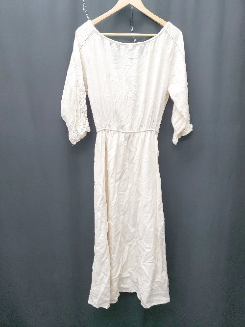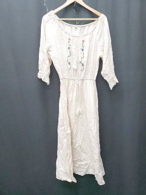 ◇ ⊂ cepo セポ 花柄 ギャザー 長袖 膝下 ワンピース サイズM ベージュ系 レディース P