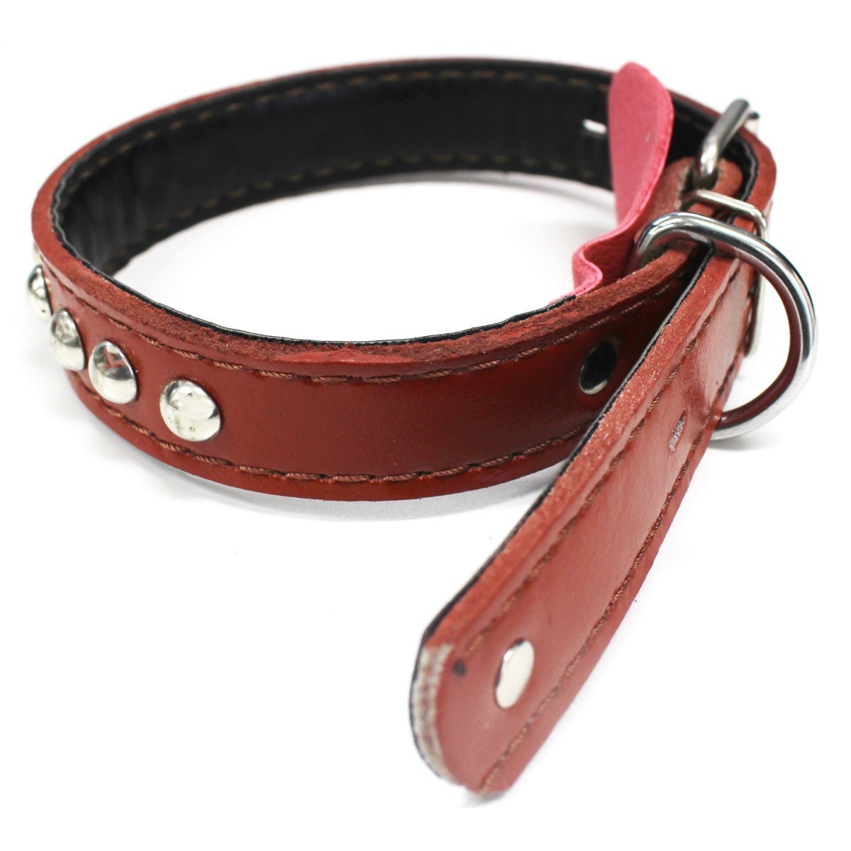 【送料無料】犬 首輪 小型犬 中型犬 首回り:32.5-44.5cm 幅2.5cm 茶 ブラウン レザー 合皮 パグ ボストンテリア フレンチブルドック 柴犬