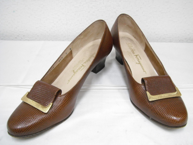 | 商品説明 | 14/Salvatore Ferragamo サルヴァトーレフェラガモ レザー パンプス 7 B リザード型押し です。 |