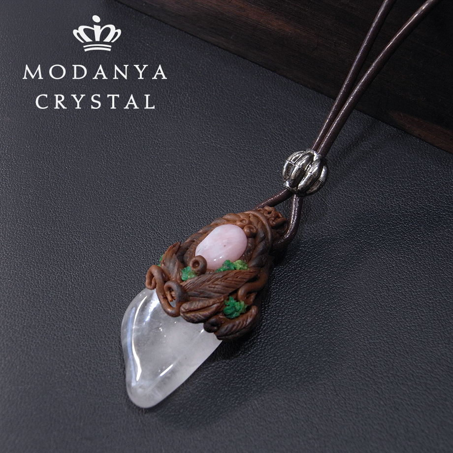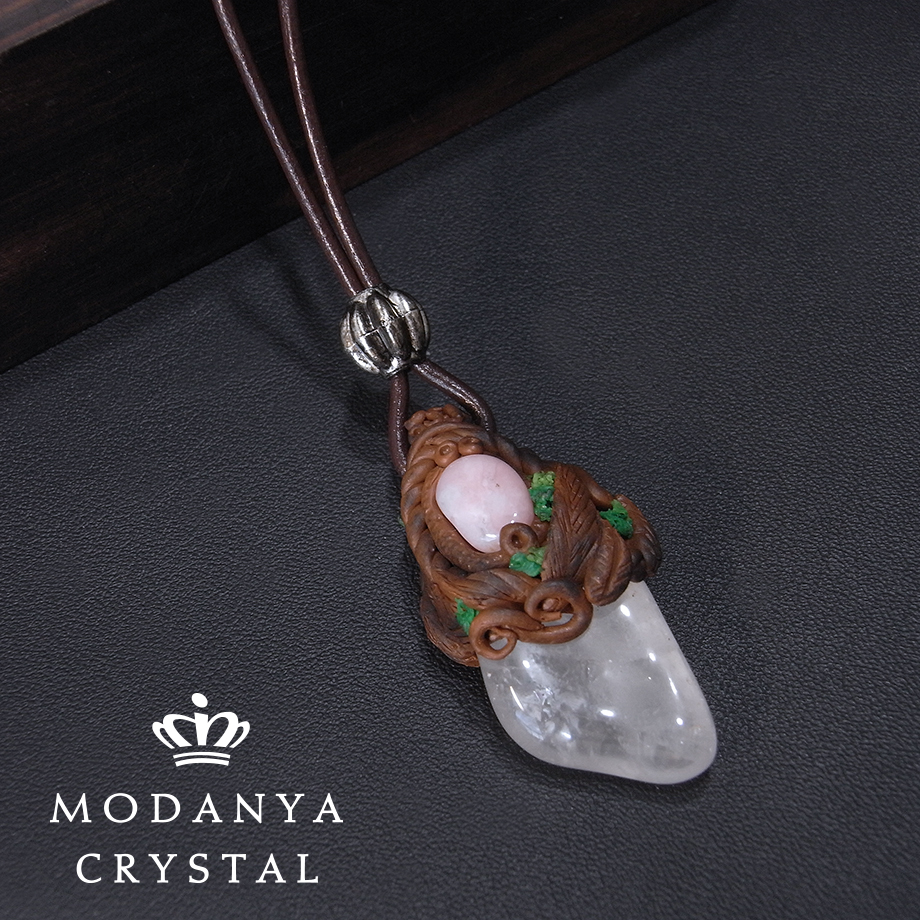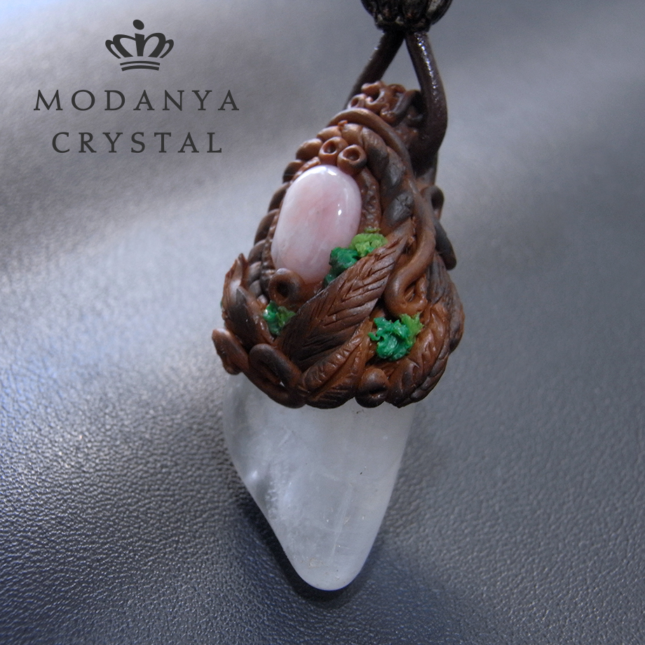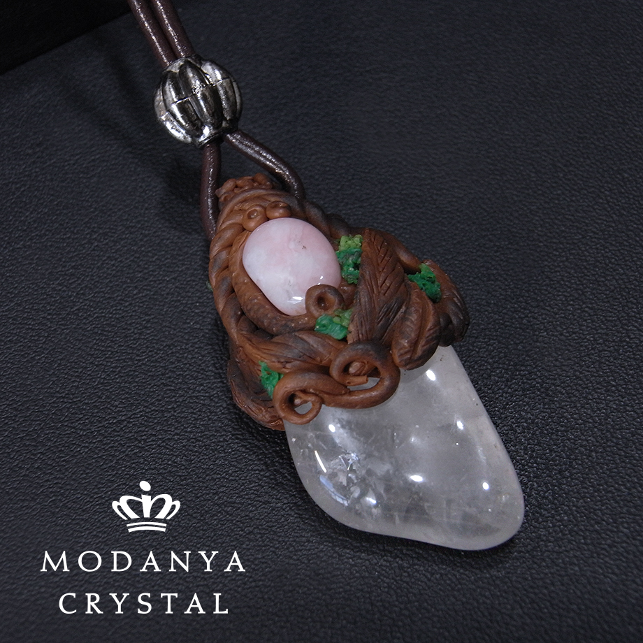 水晶のタンブルに、樹脂粘土(ブラウン)でアートしたペンダントトップです。