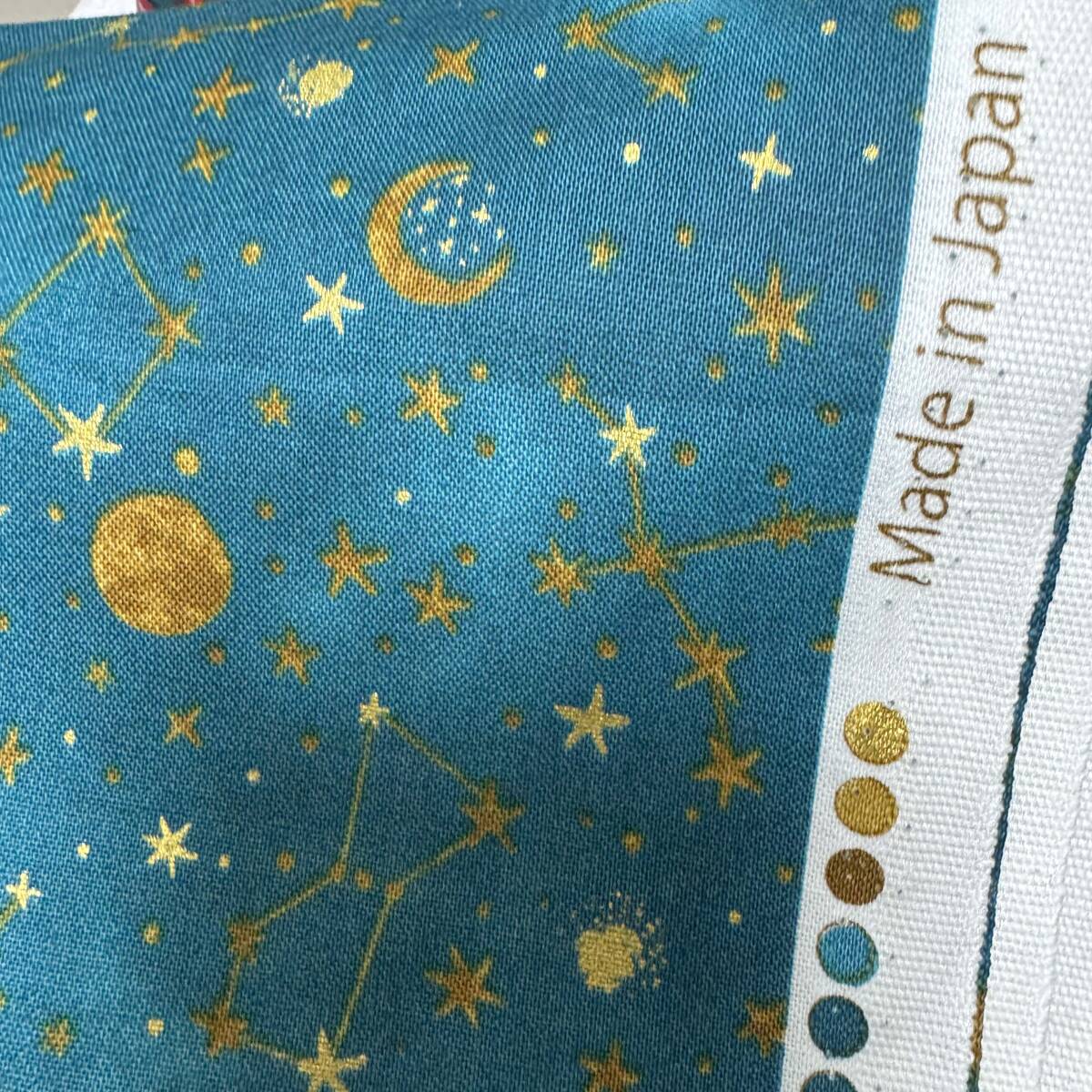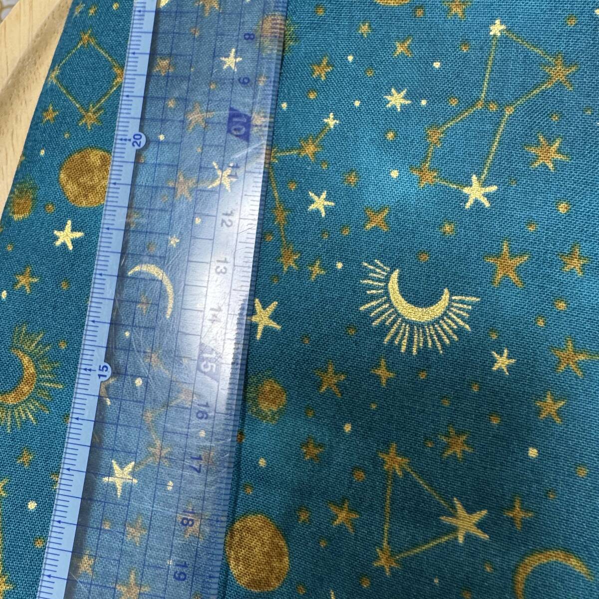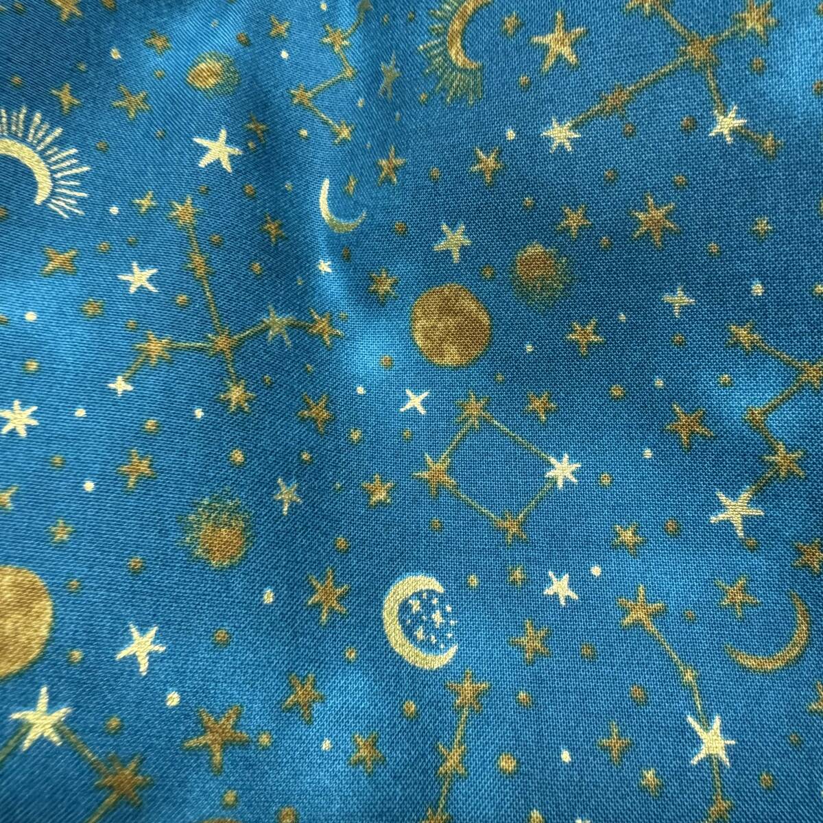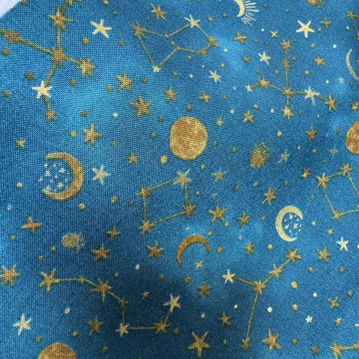 綿シーチング宇宙柄★月★星★星座★はぎれ布ニュアンスブルー生地50c銀河ラメ