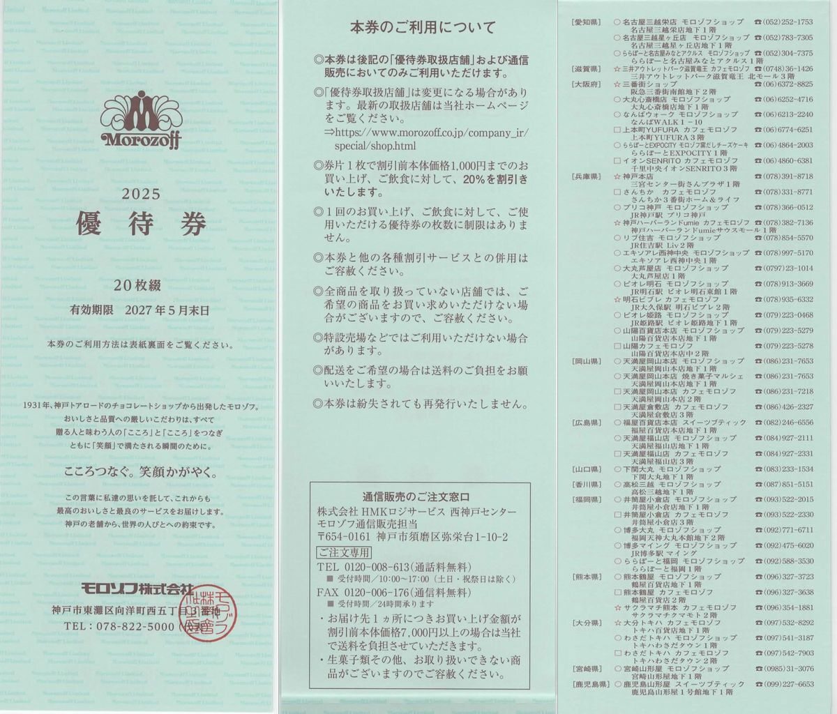 | 【最新2027/5/31まで】 モロゾフ株主優待券20枚セット | |