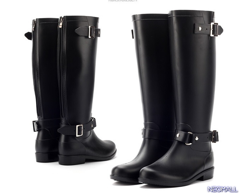 1スタ☆ ロングレインブーツ【488】 25.5cm ブラック×ブラック ジッパー付きで履きやすい!防水 レインシューズ レディース 長靴