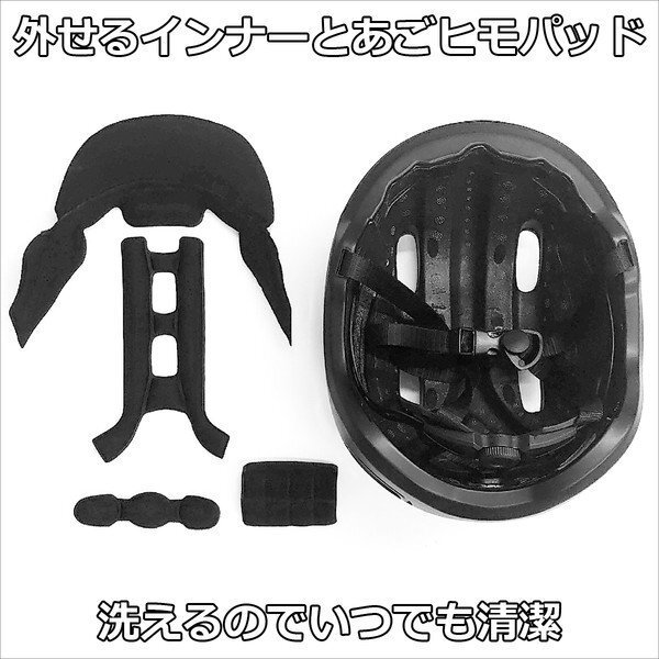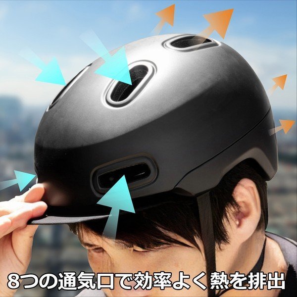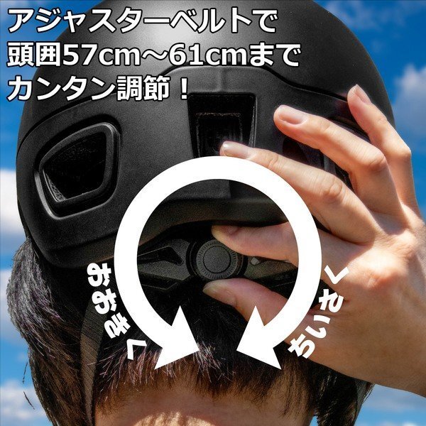 ●普段使いができるユニセックスデザインのヘルメット CE(EN1078)の安全基準をクリア 頭部に熱がこもりにくい通気口を設けた軽量で丈夫なヘルメット! 頭囲約57cm~61cmまでカンタンに調整可能で性別問わず着用できます カブっても見た目もオシャレな自転車用ヘルメットです! ●CE(EN1078)の安全基準をクリア CE(EN1078)は自転車用ヘルメットの欧州安全規格です ●普段使いできるデザインと機能 頭囲57cm~61cmまで調整可能なアジャスターベルト付き ●8つの通気口で頭部の熱を効率よく排出 ヘルメット後部の通気口にワイヤーロックを通して自転車等に固定することが可能です カンタンに外せて洗えるインナーパッド&アゴひもパッド 【使用上の注意】 ※本商品は自転車専用ヘルメットです自転車ヘルメット以外の用途には使用しないでください ※ヘルメットを着用する際は必ずあご紐を正確に締めてください緩く締めての着用は大変危険です ※ヘルメットの加工・改造はおやめください本来の性能を著しく損なう場合があり大変危険です ※ヘルメットは必ずしも怪我を防ぐものではなく、危険度を減らす装備の1つで、いかなる事故や転倒に対して安全性を発揮するものではありません ※当商品の誤った使用に起因する損害や傷害、死亡事故に対してもいかなる責任を負いません
