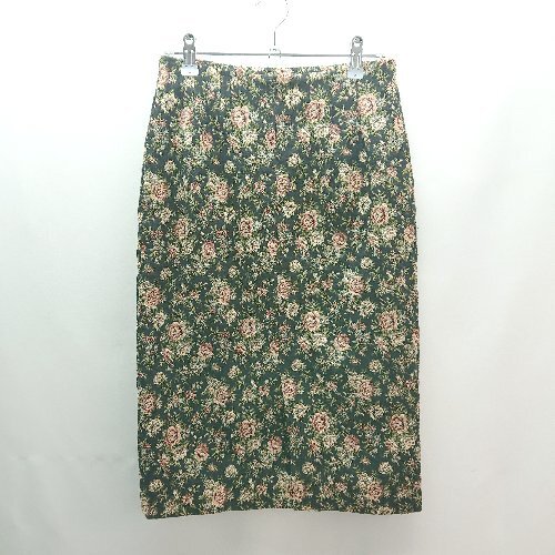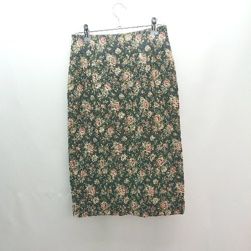 ◇ CORDIER コルディア バックジップ 花柄 裏地 スリット ひざ丈 タイト スカート サイズ38 ブラック系 レディース E