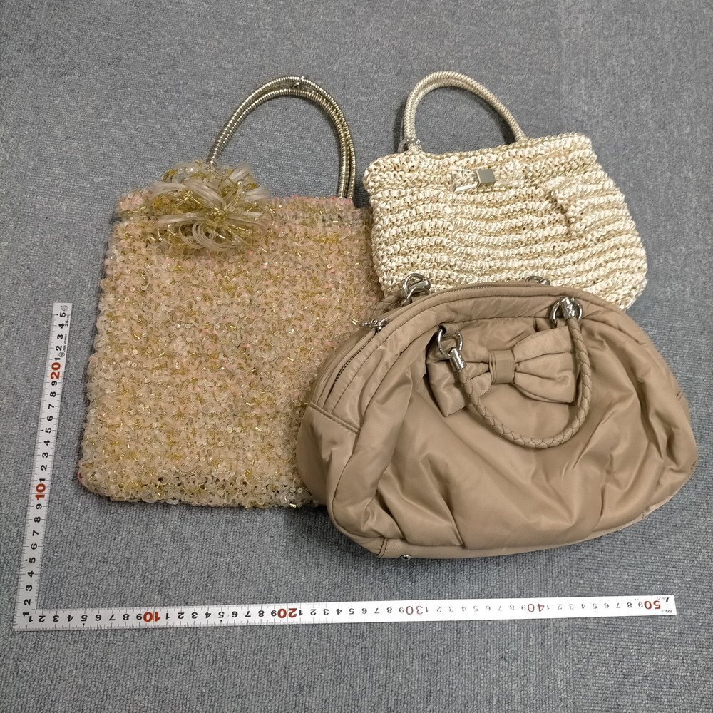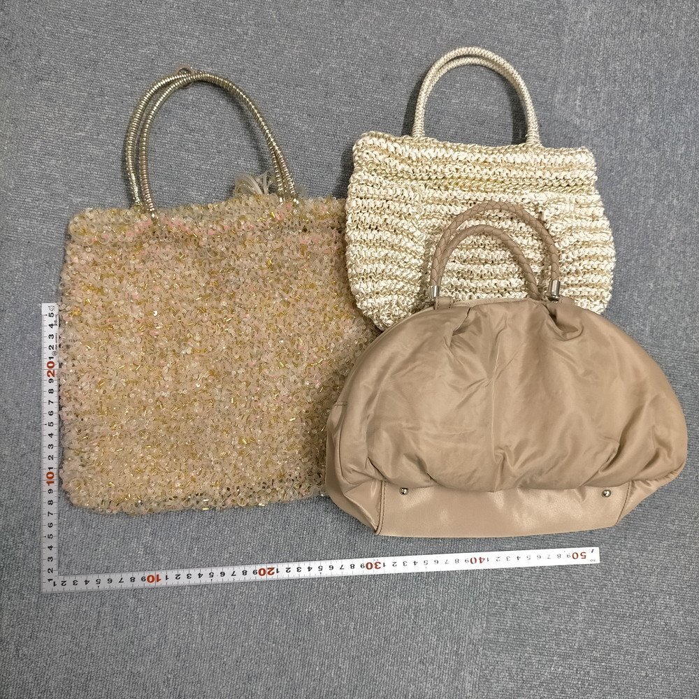 状態備考 : ANTEPRIMA(アンテプリマ)のバッグ3点セットです。きらめきのあるビーズ編み風トート、やわらかな編みデザインのハンドバッグ、落ち着いたベージュのふんわりバッグと、アンテプリマらしい上品で華やかな雰囲気のアイテムが揃っています。軽くて扱いやすく、コーデのアクセントとしても活躍する実用的なセットです。中古品のため、全体的に薄汚れ・スレ・軽い型くずれ・金具のくすみなどの使用感はありますが、大きな破れや重大なダメージはなく、まだまだご使用いただける状態です。ビーズ調のバッグは存在感があり、編みバッグはナチュラルで可愛い印象、ベージュバッグは普段使いにぴったりです。サイズは写真のメジャーをご参照いただき、付属品は掲載画像のものがすべてになります。アンテプリマ好きの方や、季節問わず使えるバッグをまとめてお探しの方におすすめです。