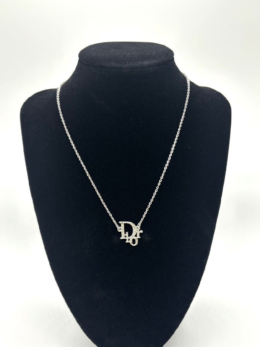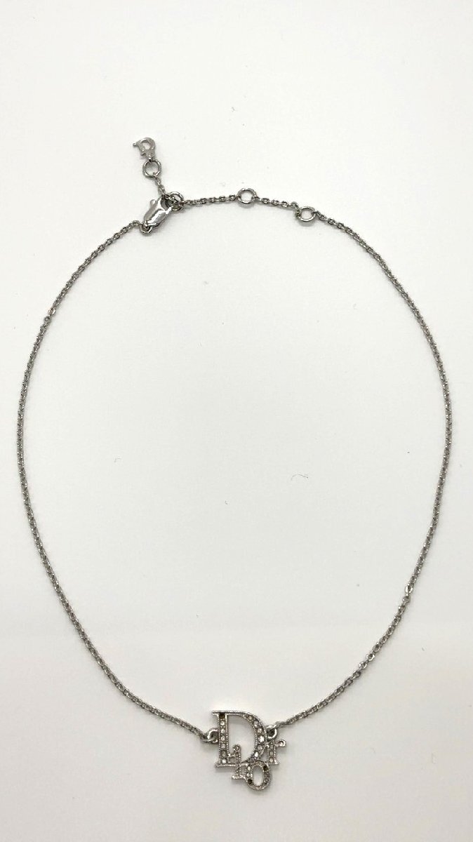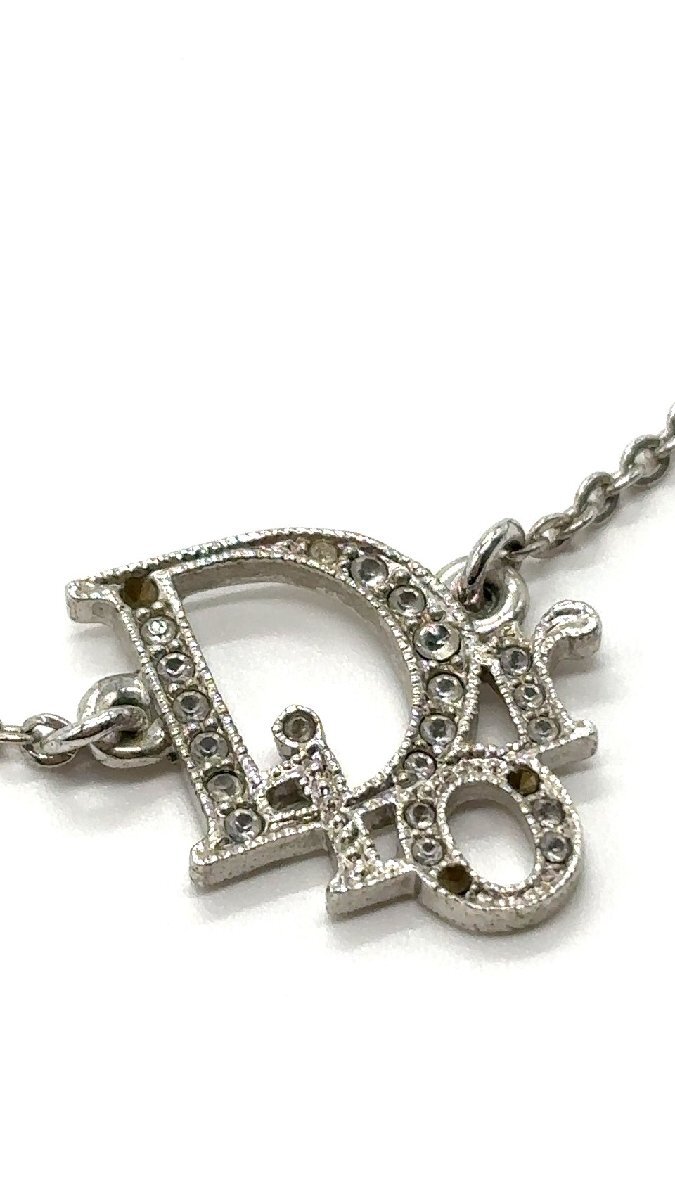 クリスチャンディオール Christian Dior ロゴネックレス ラインストーン シルバー