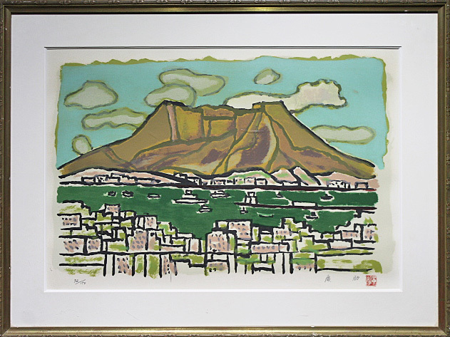 ■田崎広助 【桜島】 リトグラフ 直筆サイン 印章有り エディション有り