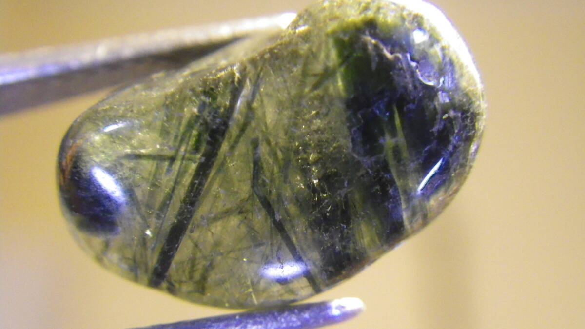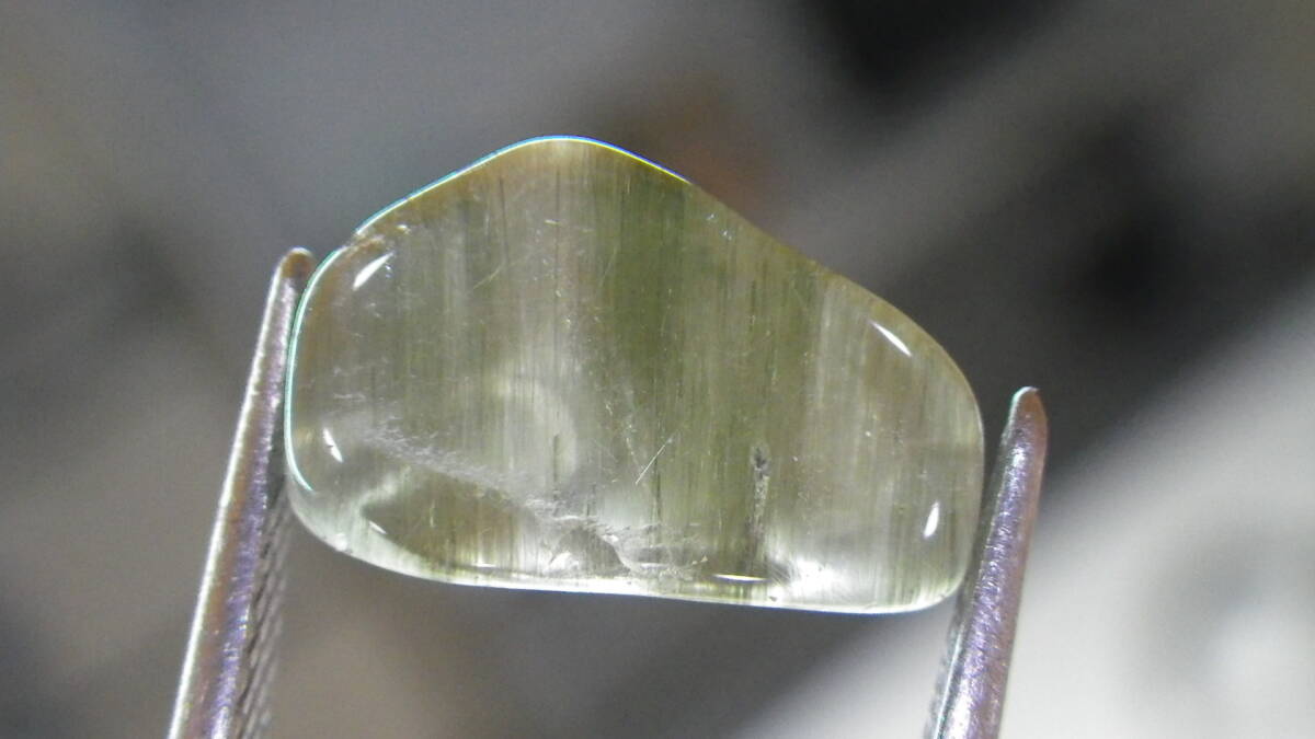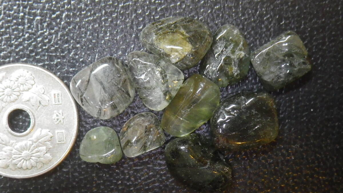 南米はブラジル産の、グリーンなルチルが内包された水晶(クォーツ)原石です。