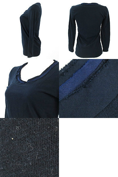 | 首ぐり部分が切りっぱなしのデザインになっていて クールな印象☆ 落ち着いた大人のネイビーカラー インナーとしても一枚でもつかえる便利なカットソーです。 バスト約84cm 着丈約63.5cm 袖丈約51.5cm 肩幅約36.5cm 【サイズ】:(XS) 【素 材】:(綿、シルク) 【 色 】:(ネイビー) 【程 度】:(AB) **管理番号** 8490-20150317-010 299 013 | ||||