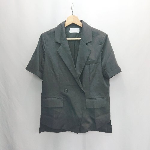 ◇ ⊂ La pomme ラポーム 半袖 ジャケット サイズL ブラック レディース E