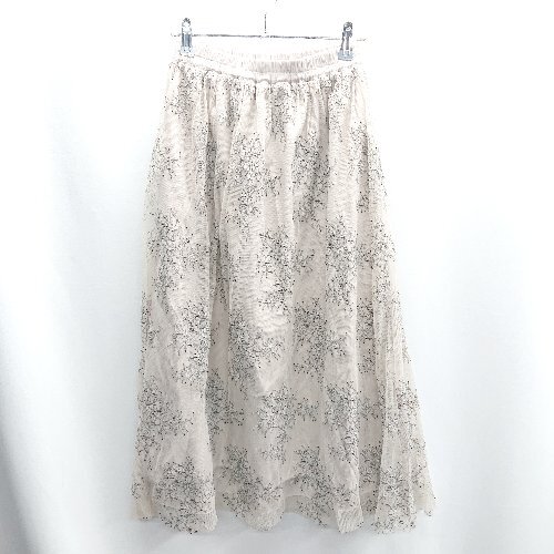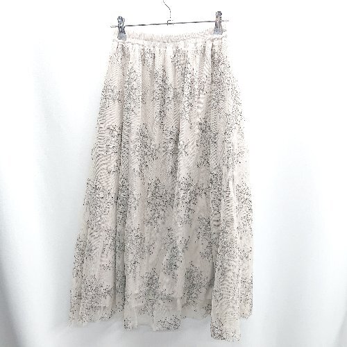 ◇ ⊇ ハドソンハニー Hudson honey 花柄 フレア ロング丈 チュール スカート サイズM ベージュ レディース E