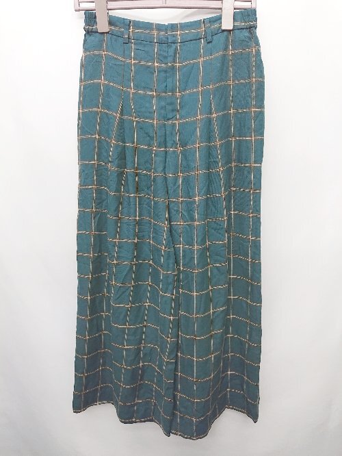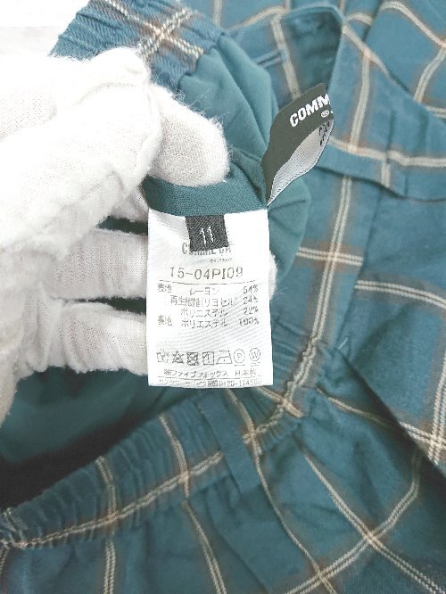 ◇ COMME CA コムサ チェック ワイドパンツ サイズ11 グリーン系 マルチ レディース P