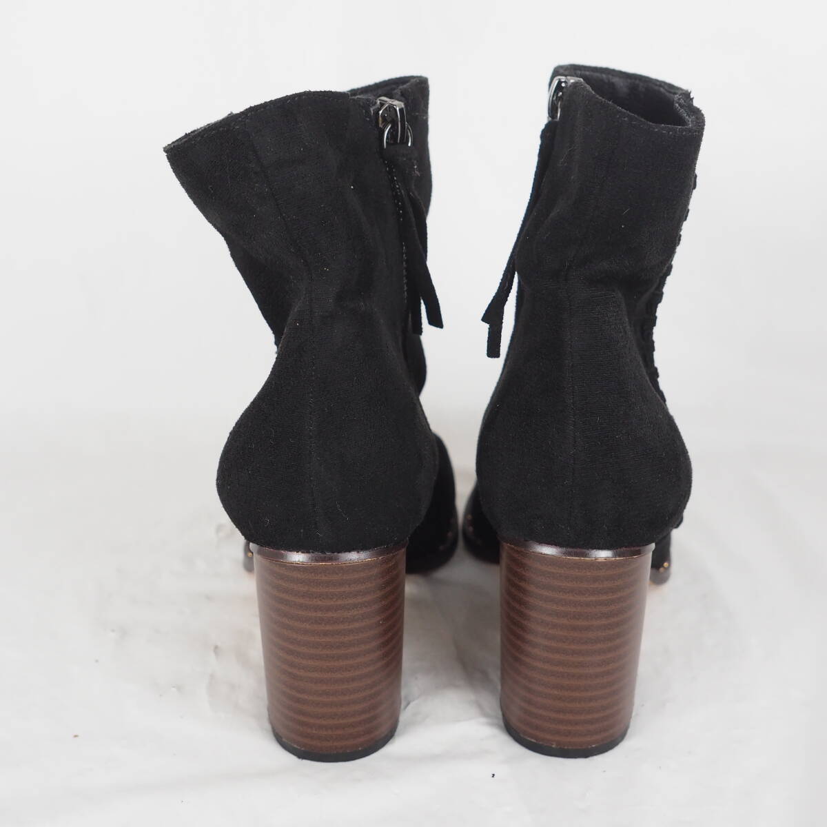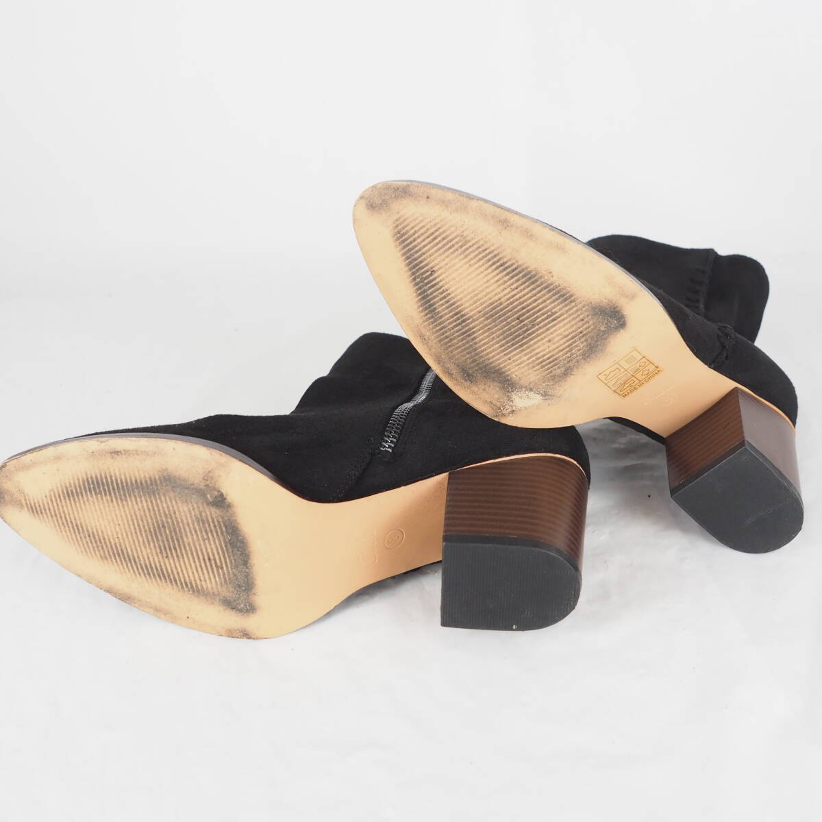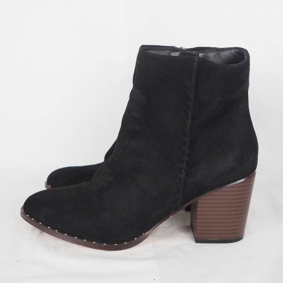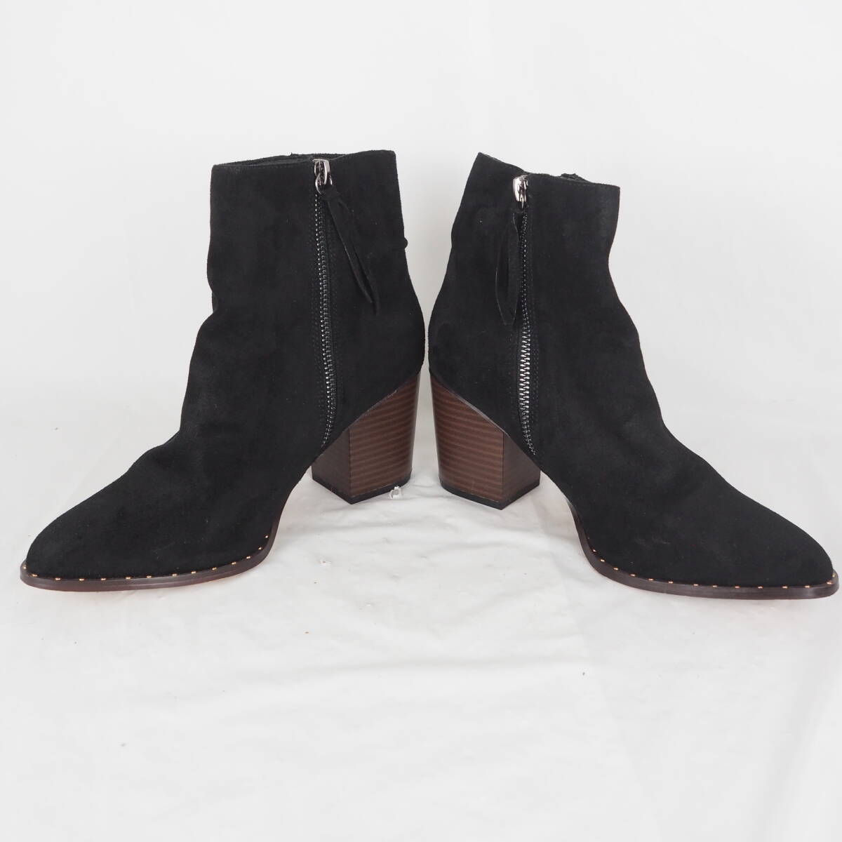 | ページをご覧いただきありがとうございます^^靴、ブーツを中心に出品しております。 シンプルなデザインにスエード調素材が上品さを添えるブーティです。 太めのヒールが安定感をもたらし、歩きやすさとスタイルアップを両立しています。 サイドジップ仕様で着脱がしやすく、秋冬のコーディネートに取り入れやすい一足です。 ☆商品詳細☆