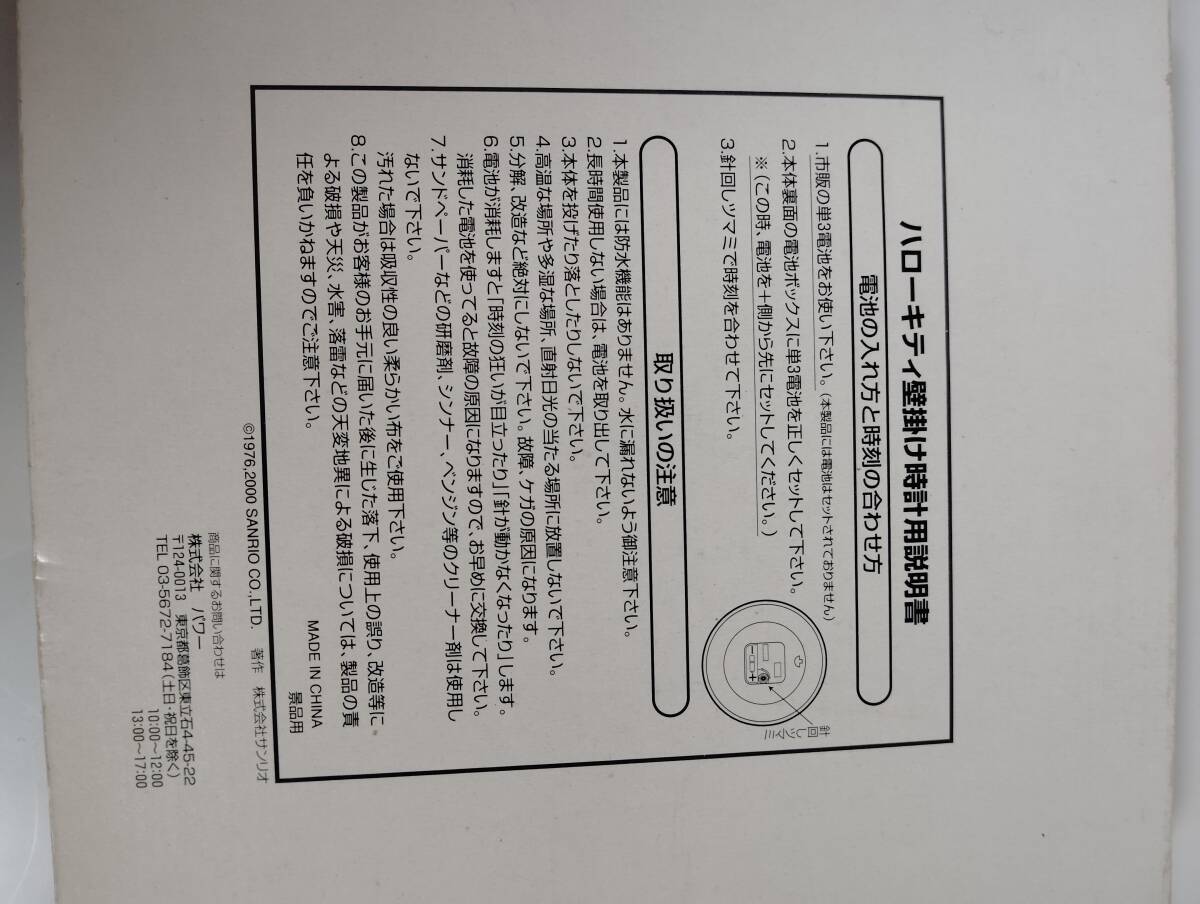 | C-2501-8 商品名:ハローキティの壁掛け時計 素材:プラスチック 腕周り: 画像参照 付属品:なし 単三電池別売り | |||