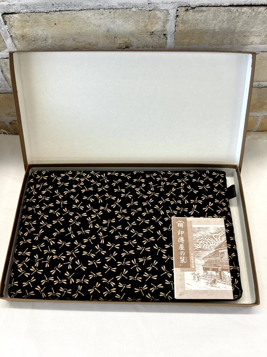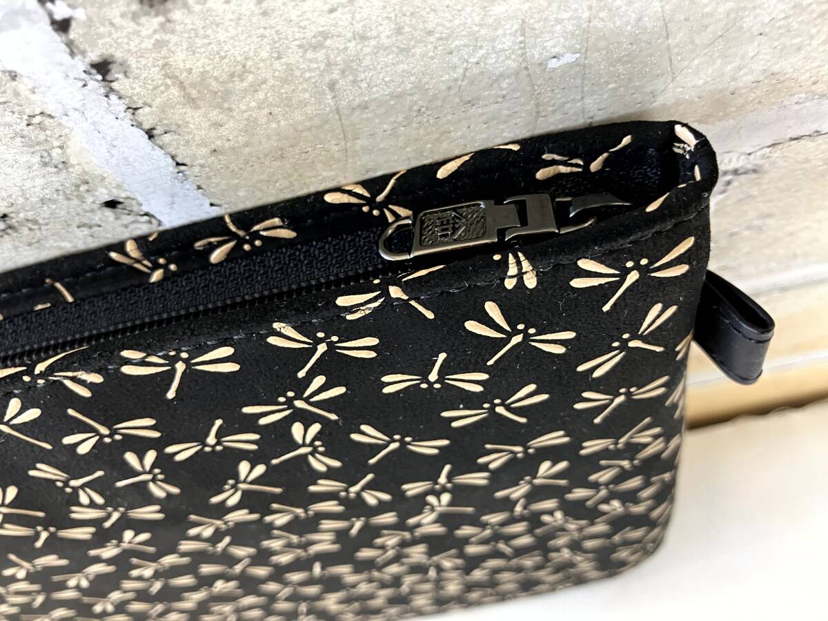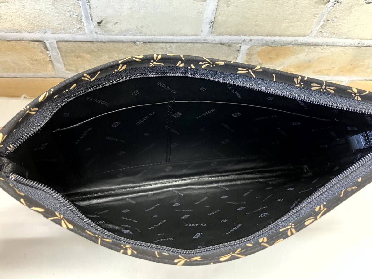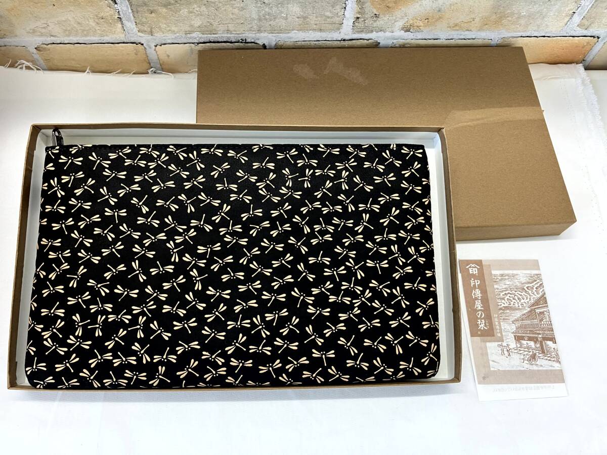 [未使用] 印傳屋 INDEN‐YA 印伝 フラットポーチ 小物入れ トンボ柄 ブラック