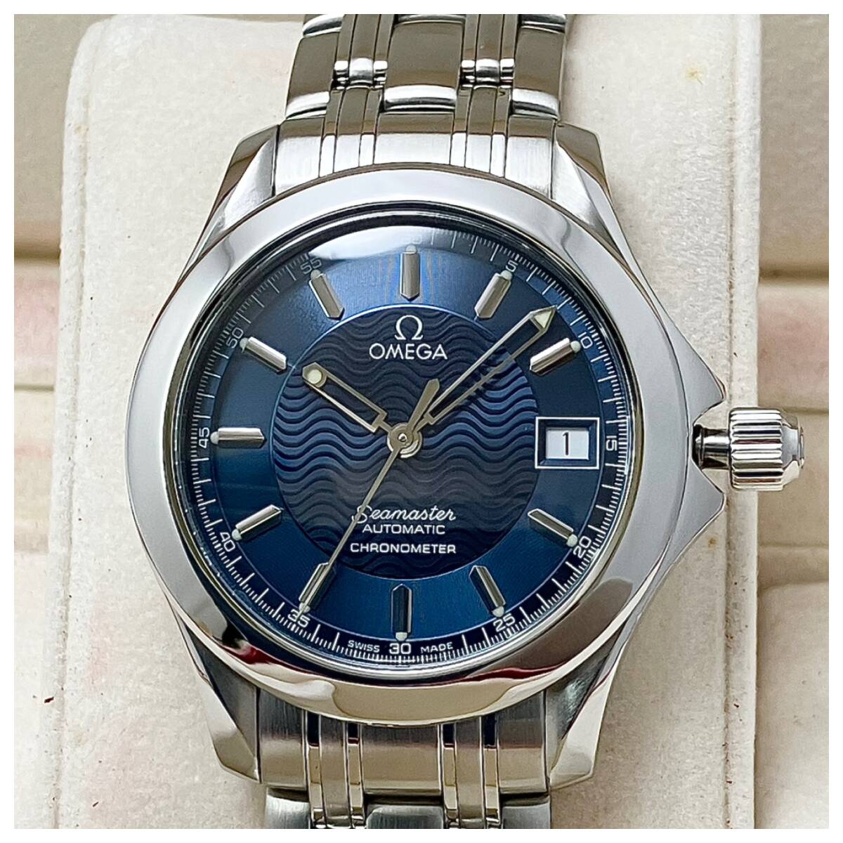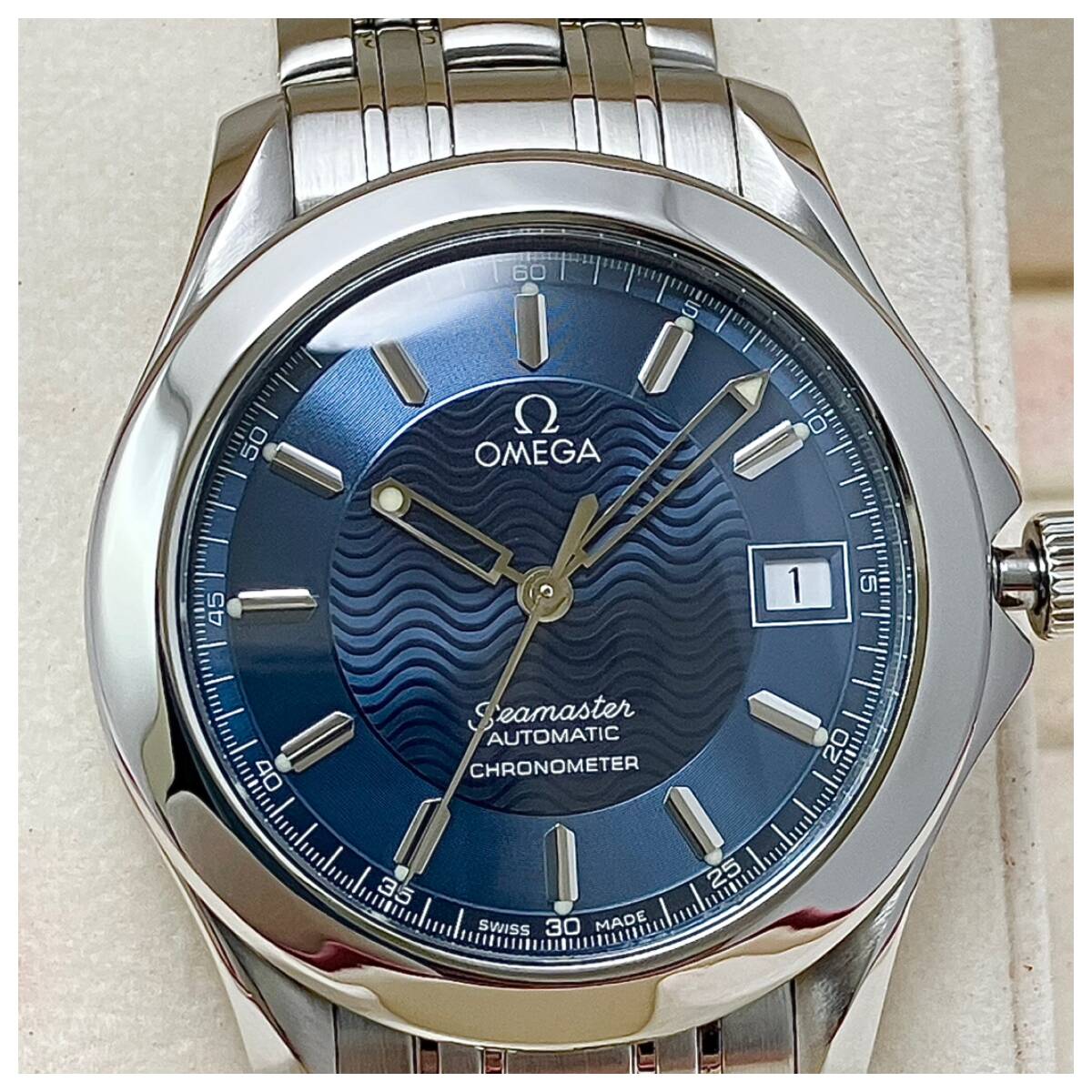 オメガの人気モデル、シーマスター120mの自動巻きモデルの「クロノメーター」です。