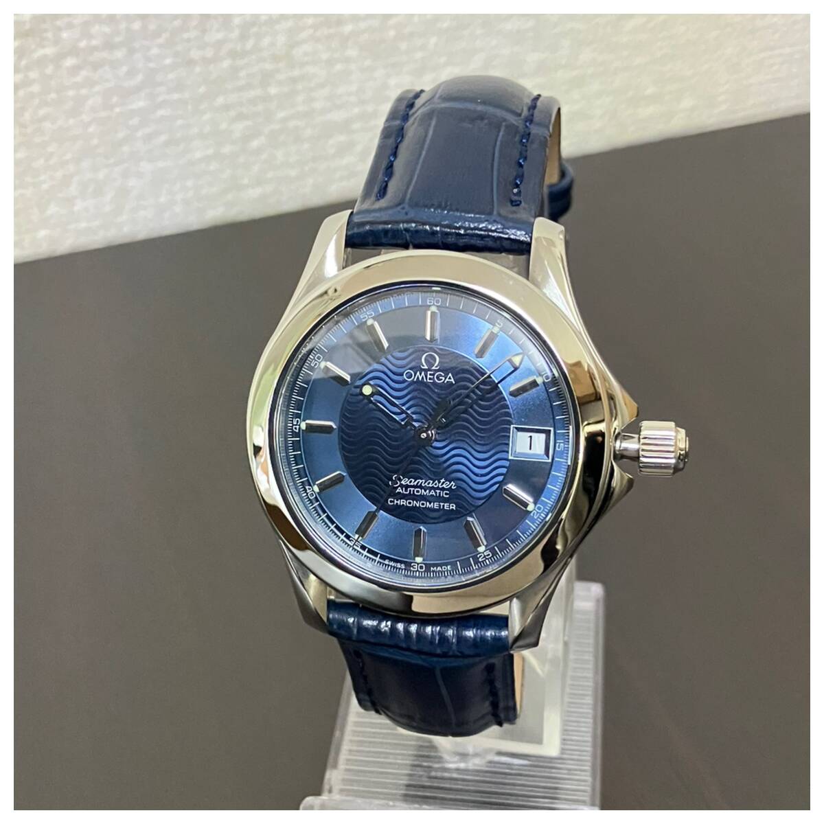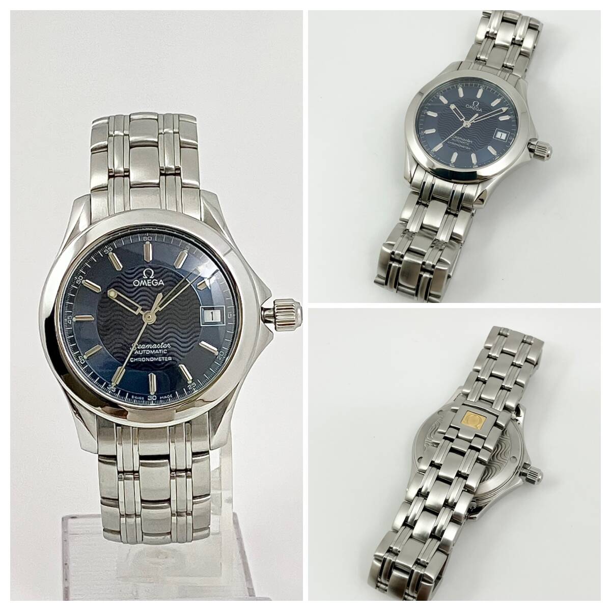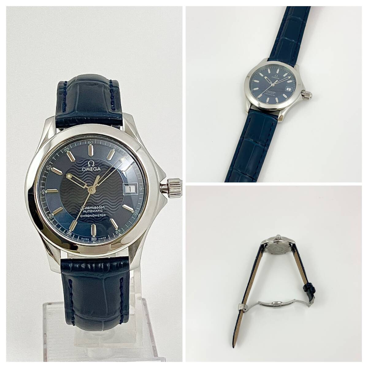 付属品全部、ベルト2種付き☆OH済み極美品のオメガ・シーマスター120m時計☆メンズ・青盤☆自動巻き☆2501-81