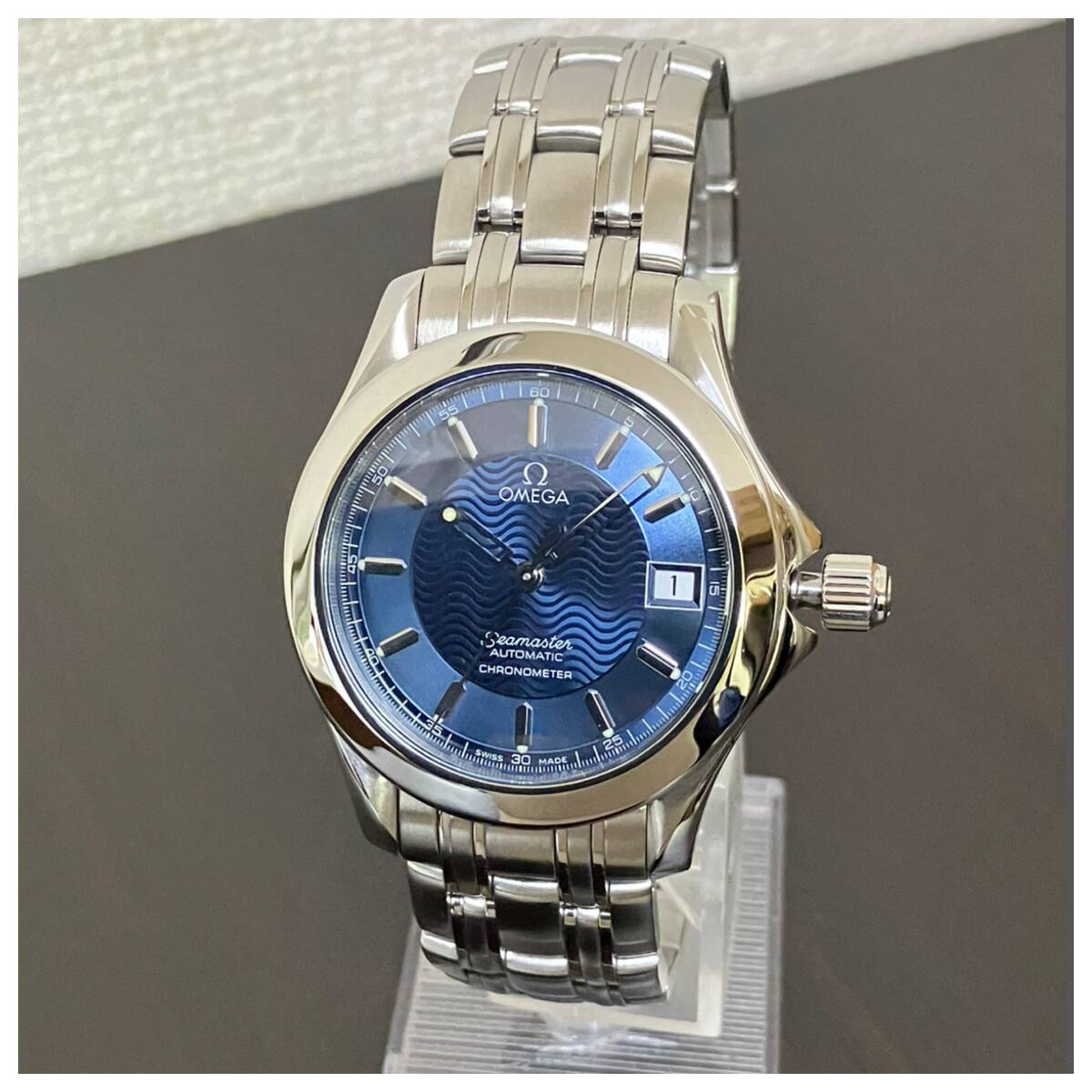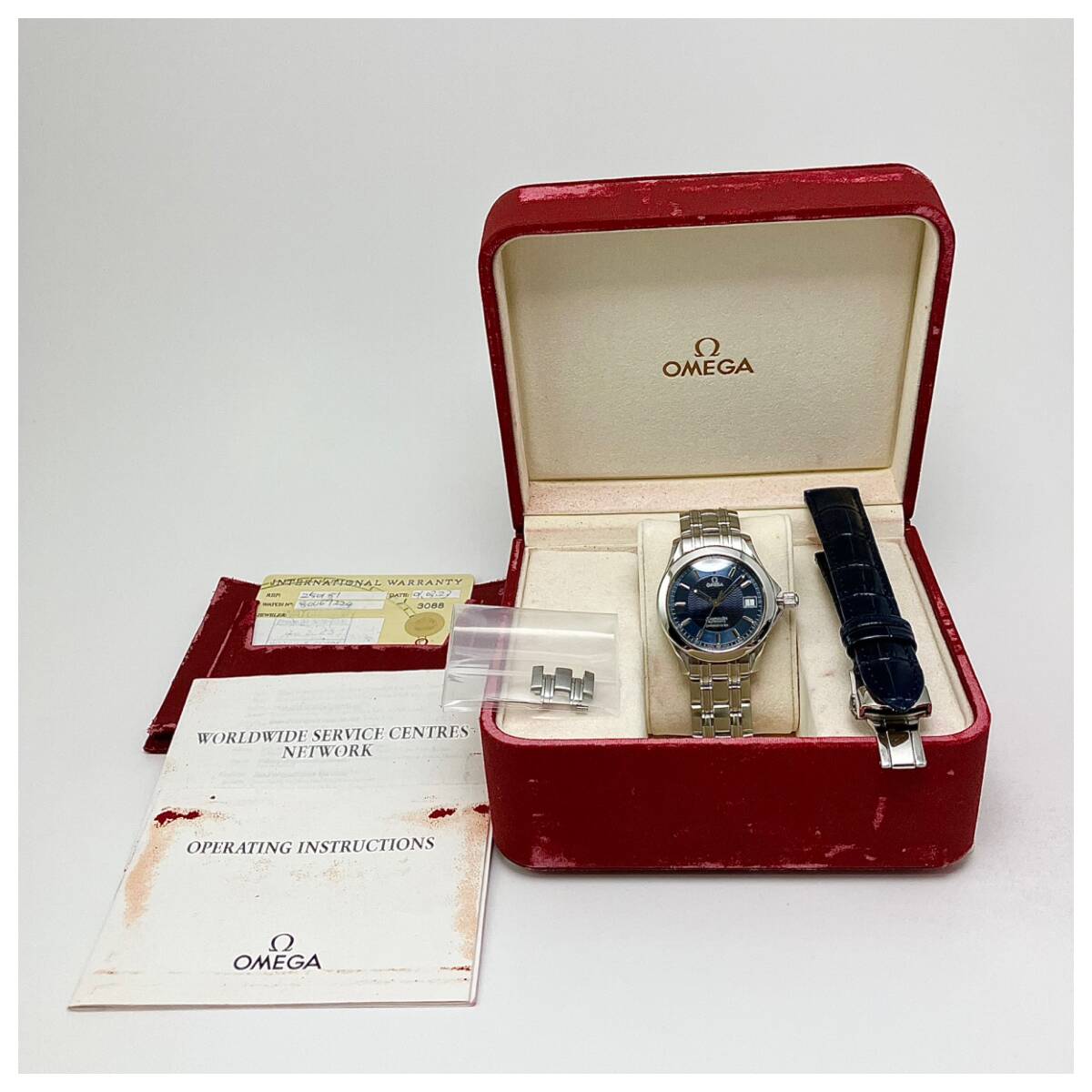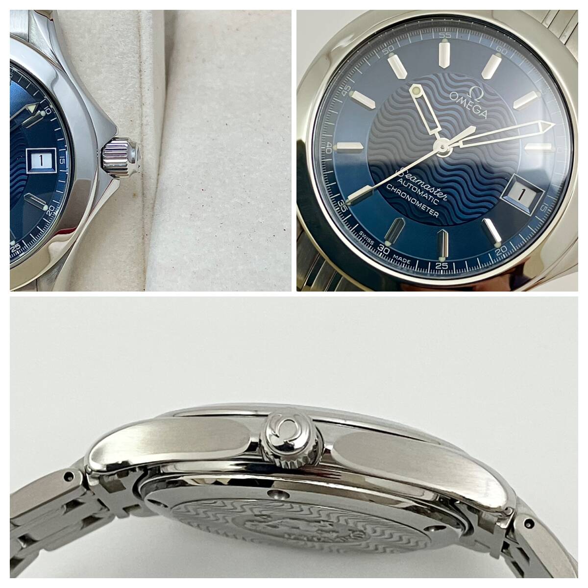 付属品全部、ベルト2種付き☆OH済み極美品のオメガ・シーマスター120m時計☆メンズ・青盤☆自動巻き☆2501-81
